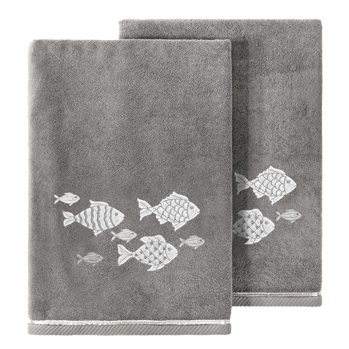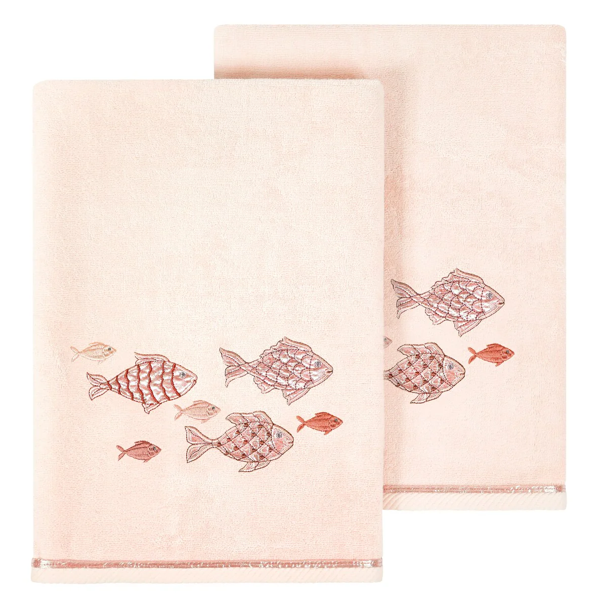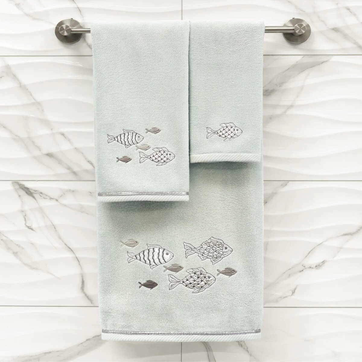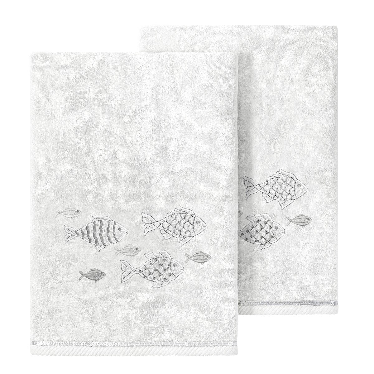 Your decorations are not complete without graceful embroidered towels for the comfort of your family and guests. The Figi towels by Authentic Hotel and Spa feature sparkling applique fish and are trimmed with a matching cord. Cloud soft and super absorbent, these luxurious, durable towels keep their plush appearance after washing. This collection is available in 8 elegant colors: White, Beige, Blush, Aqua, Silver, Cocoa, Charcoal and Marine. The Figi Towel Collection brings a coastal spirit and richness to your home decor and makes a great gift!