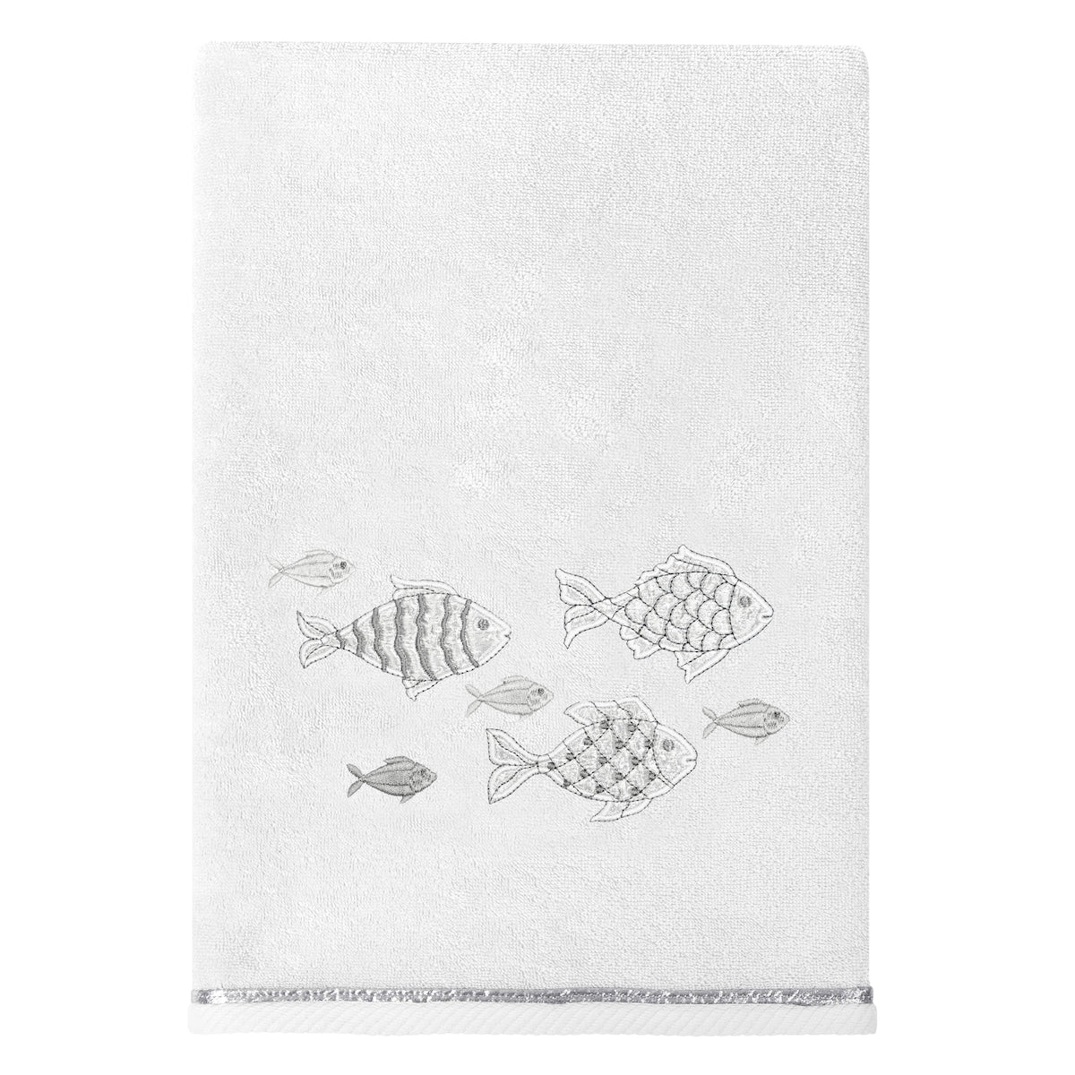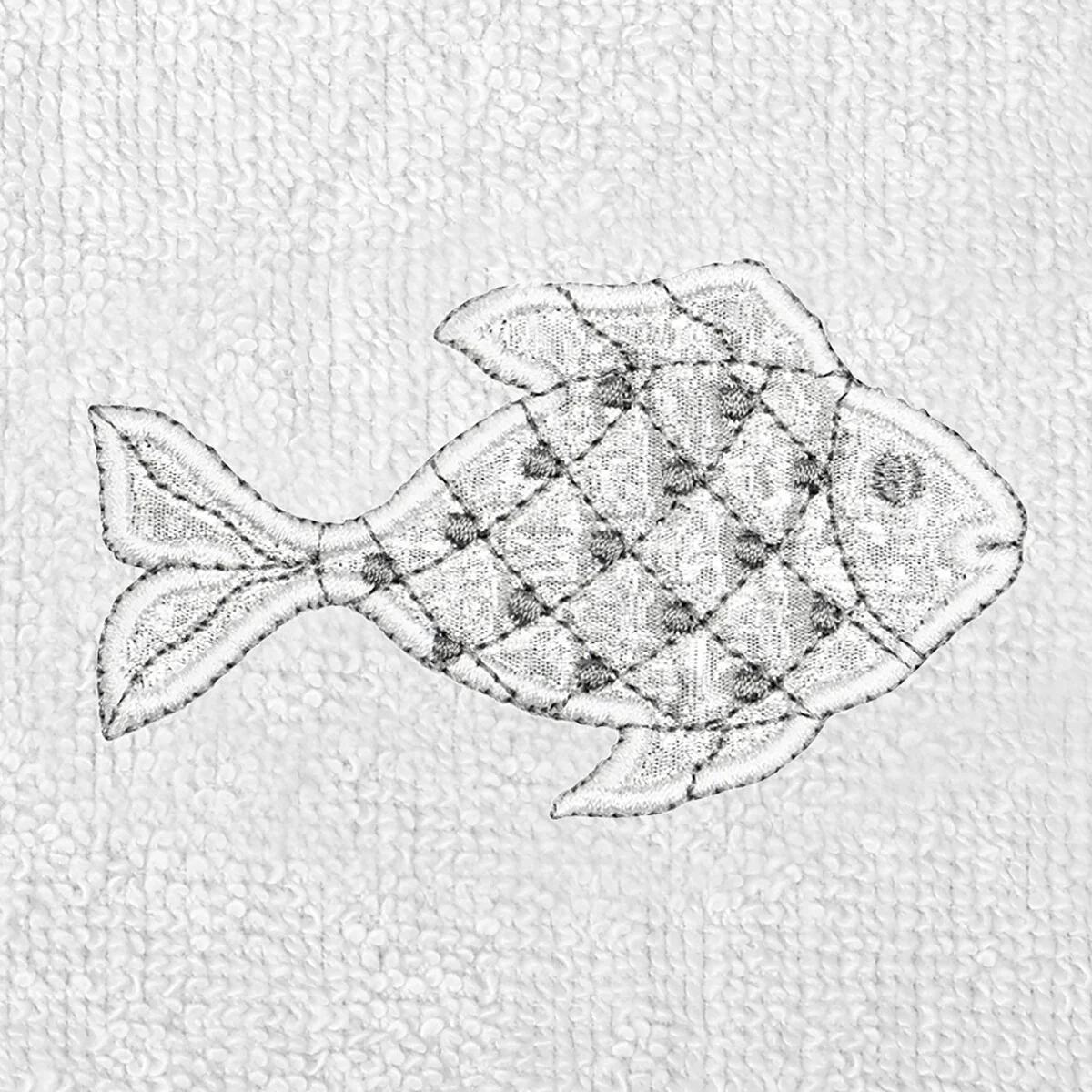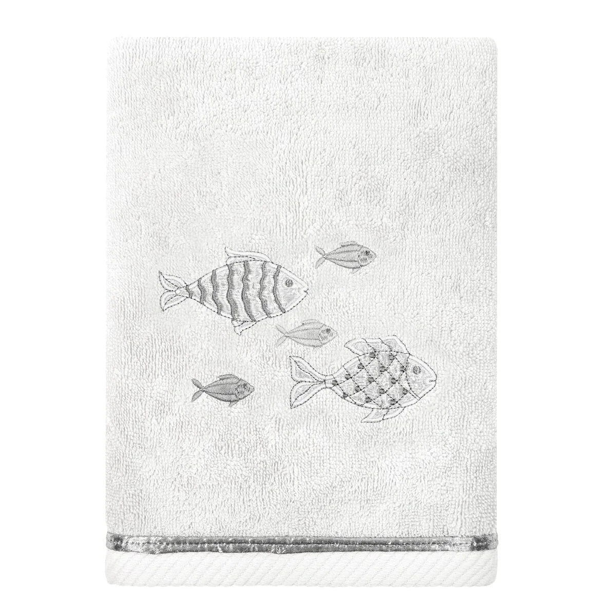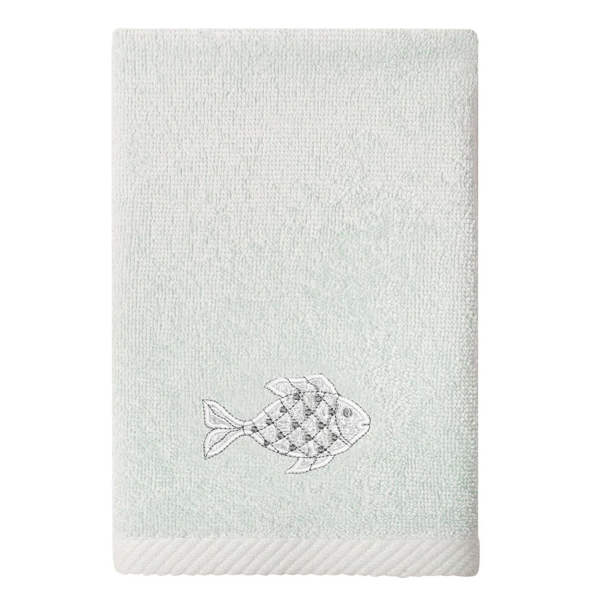 Your decorations are not complete without graceful embroidered towels for the comfort of your family and guests. The Figi towels by Authentic Hotel and Spa feature sparkling applique fish and are trimmed with a matching cord. Cloud soft and super absorbent, these luxurious, durable towels keep their plush appearance after washing. This collection is available in 8 elegant colors: White, Beige, Blush, Aqua, Silver, Cocoa, Charcoal and Marine. The Figi Towel Collection brings a coastal spirit and richness to your home decor and makes a great gift!