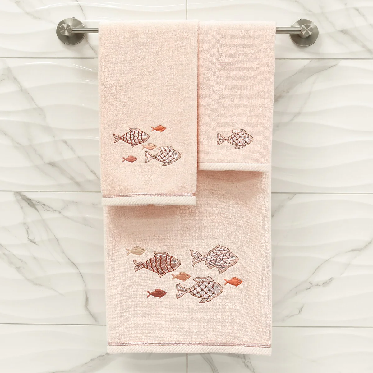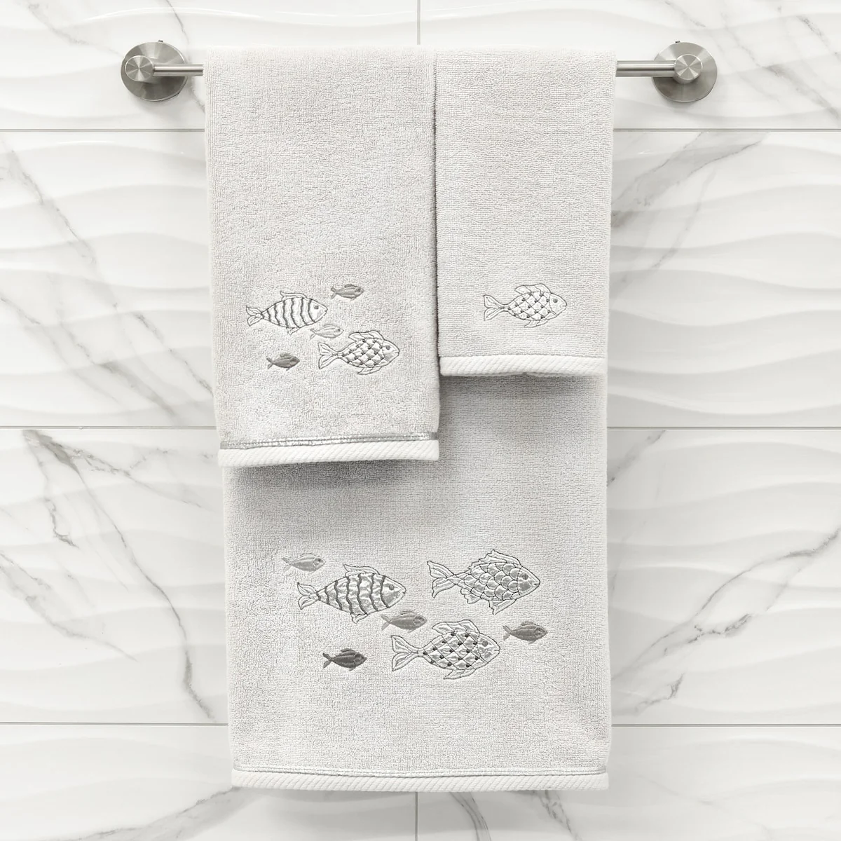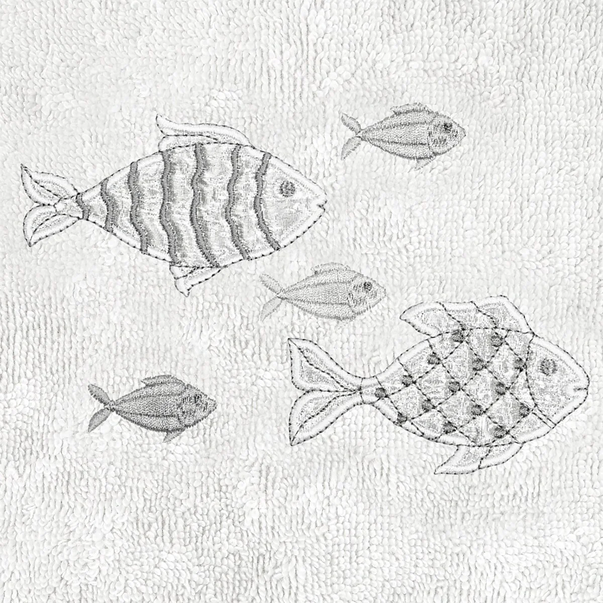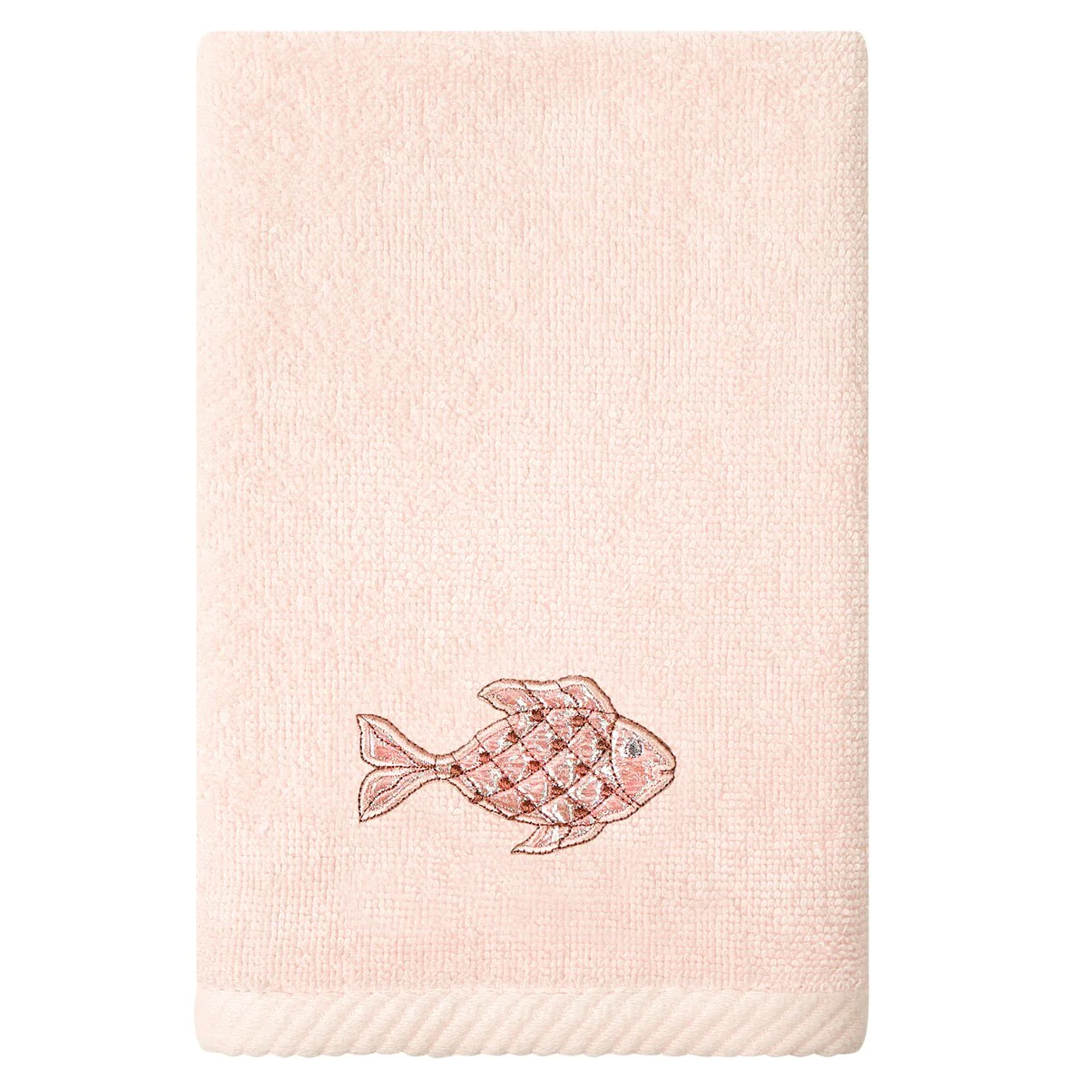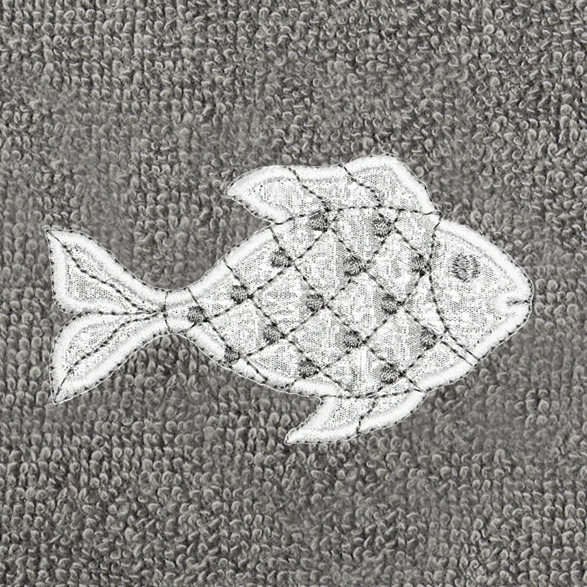 Your decorations are not complete without graceful embroidered towels for the comfort of your family and guests. The Figi towels by Authentic Hotel and Spa feature sparkling applique fish and are trimmed with a matching cord. Cloud soft and super absorbent, these luxurious, durable towels keep their plush appearance after washing. This collection is available in 8 elegant colors: White, Beige, Blush, Aqua, Silver, Cocoa, Charcoal and Marine. The Figi Towel Collection brings a coastal spirit and richness to your home decor and makes a great gift!