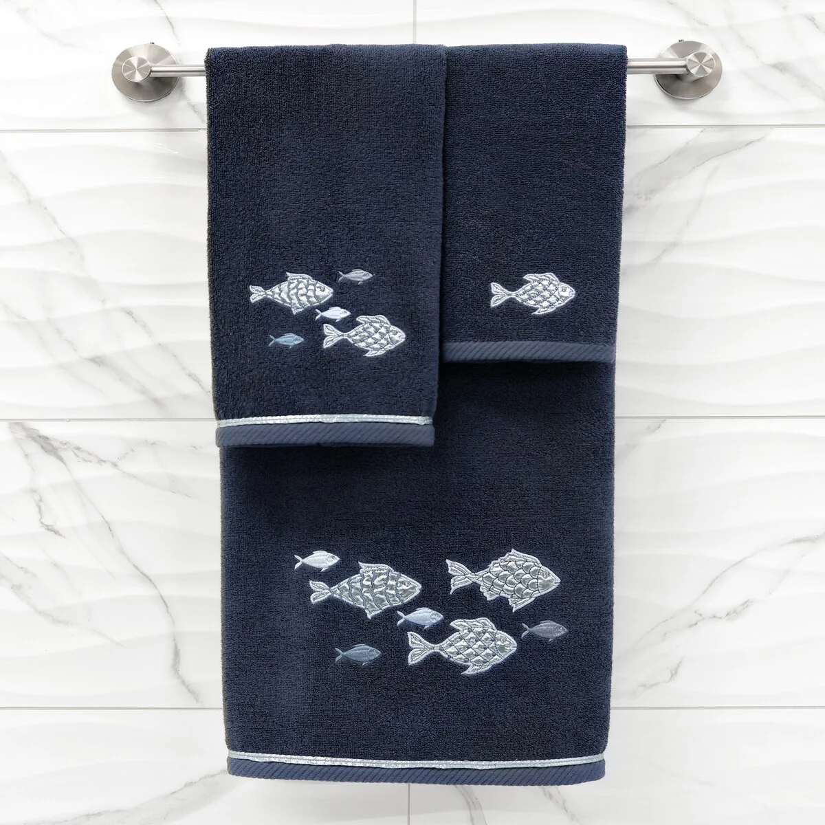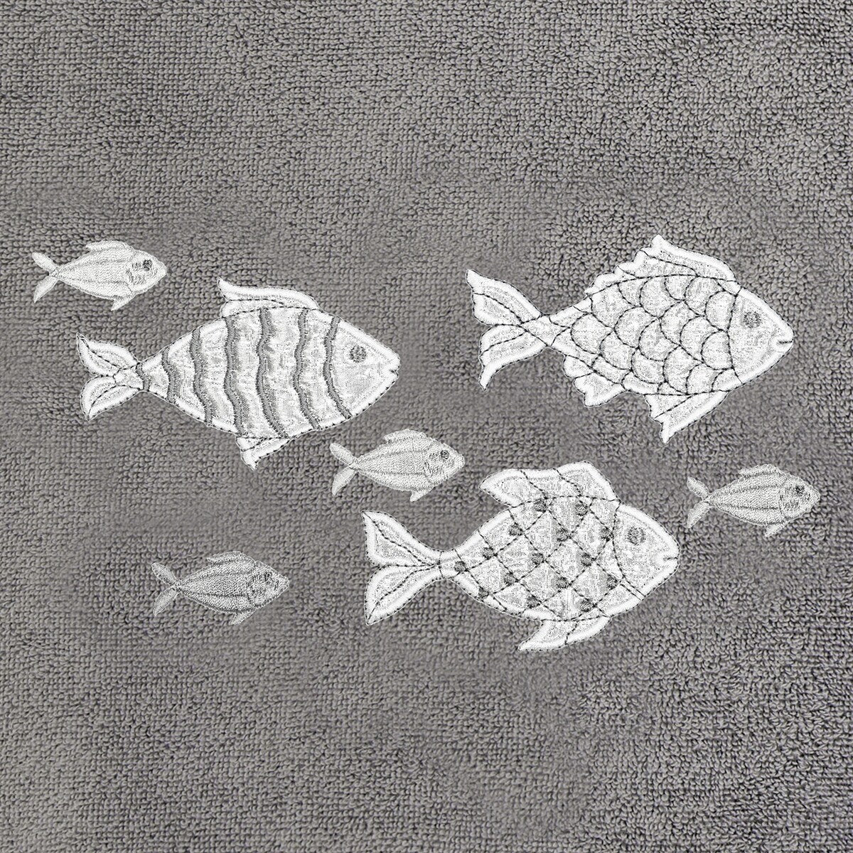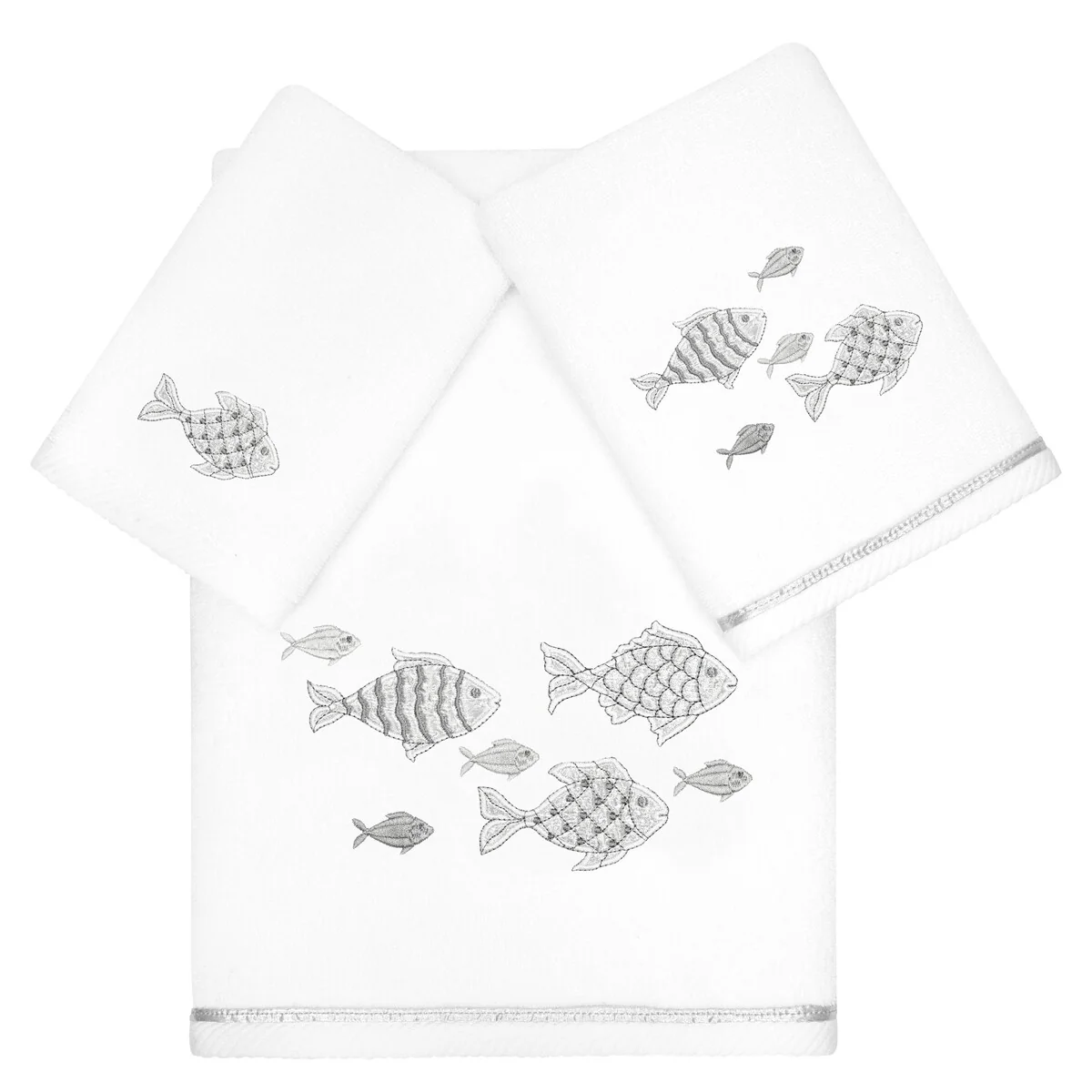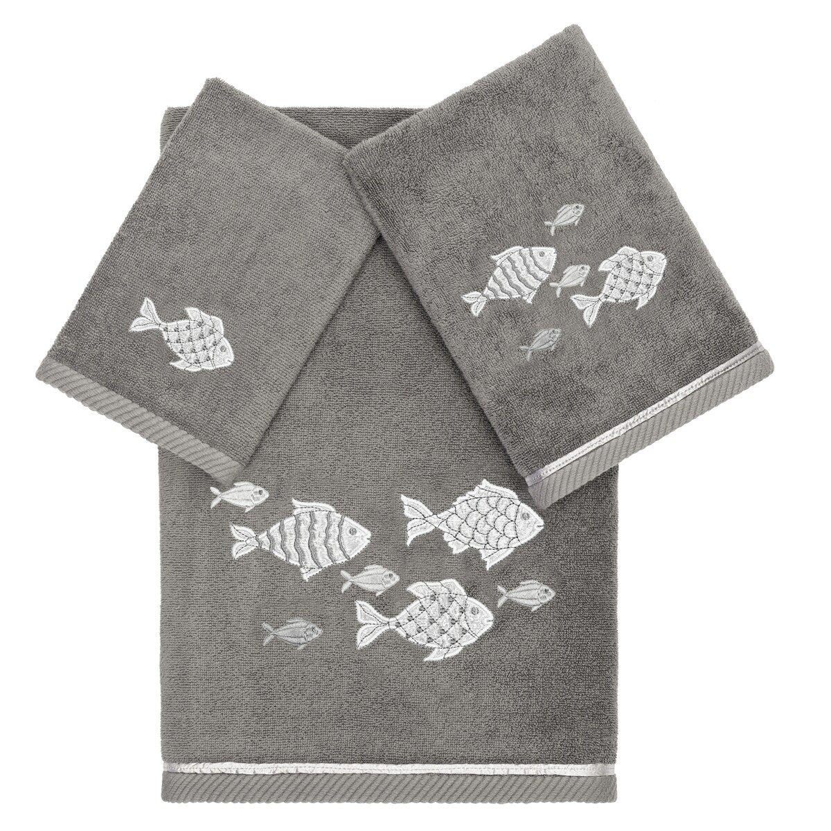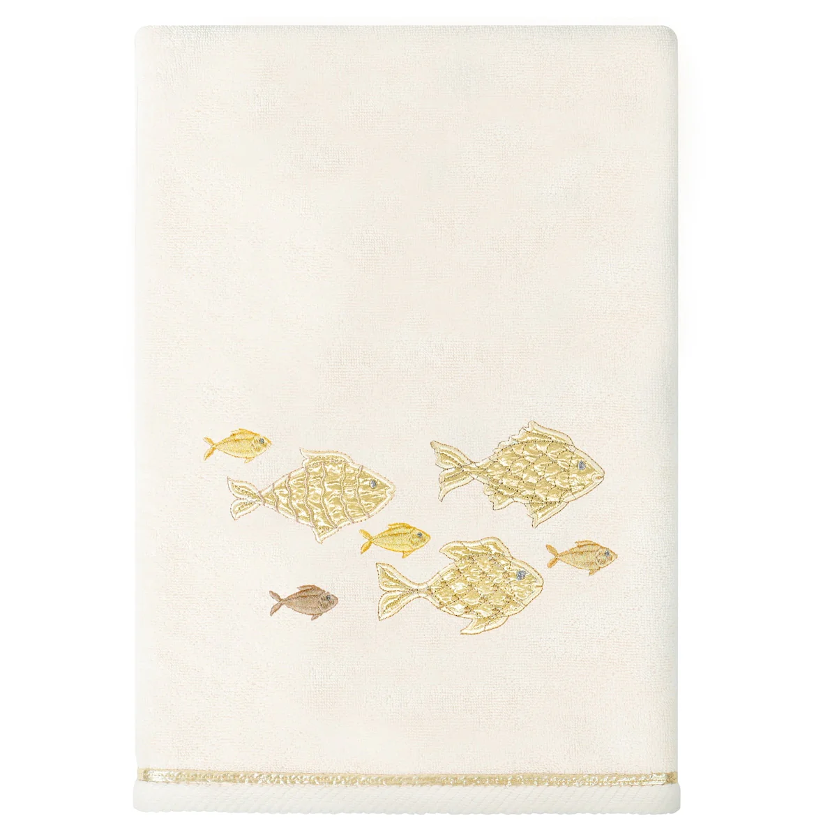 Your decorations are not complete without graceful embroidered towels for the comfort of your family and guests. The Figi towels by Authentic Hotel and Spa feature sparkling applique fish and are trimmed with a matching cord. Cloud soft and super absorbent, these luxurious, durable towels keep their plush appearance after washing. This collection is available in 8 elegant colors: White, Beige, Blush, Aqua, Silver, Cocoa, Charcoal and Marine. The Figi Towel Collection brings a coastal spirit and richness to your home decor and makes a great gift!