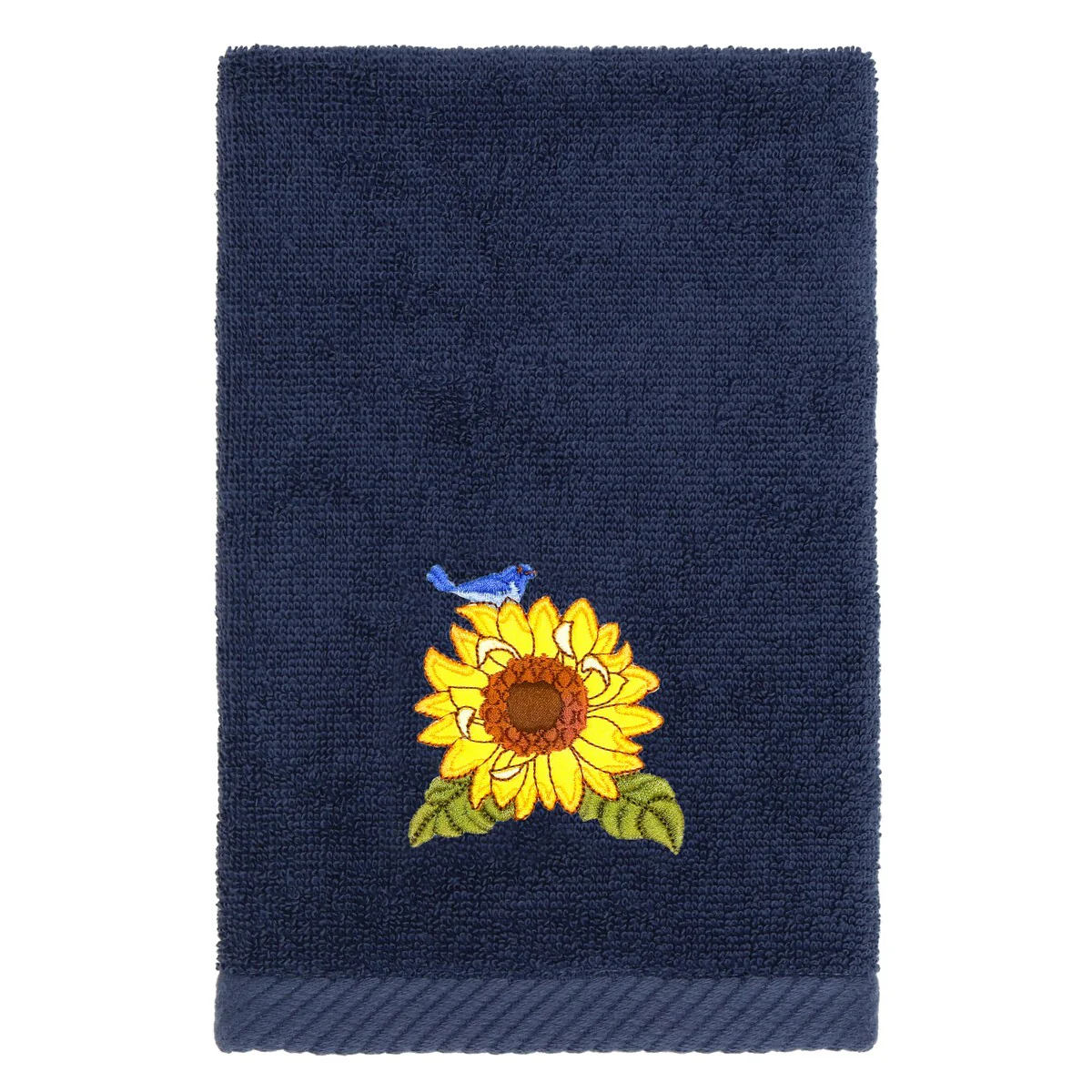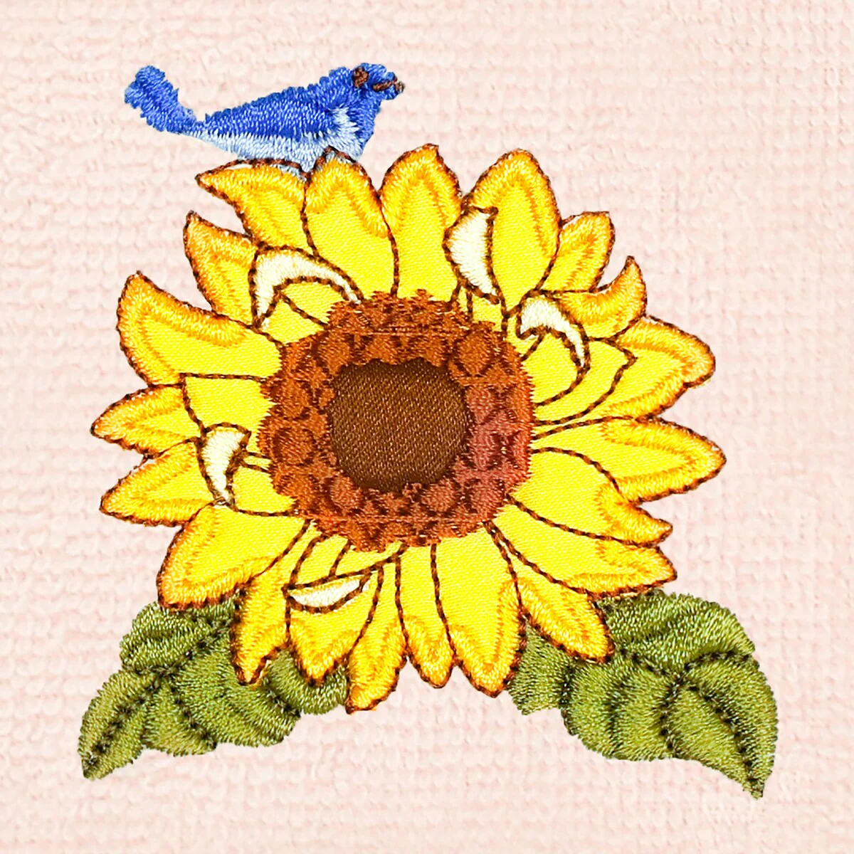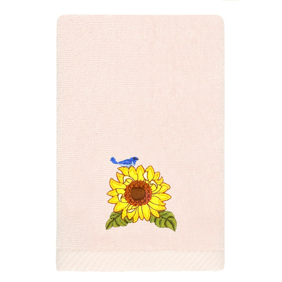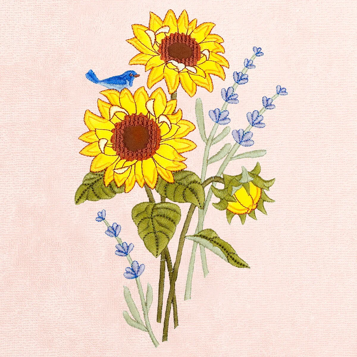 Create a mood of country charm in your bath with the Girasol Embellished Towel Collection by Authentic Hotel and Spa. These towels feature an applique embroidered bouquet of vibrant sunflowers and lavender, highlighted by a bright bird perched on top. Cloud soft and super absorbent, these luxurious, durable towels keep their plush appearance after washing. This collection is available in 8 elegant colors: White, Beige, Blush, Aqua, Silver, Cocoa, Charcoal and Marine. The Girasol Towel Collection brings a natural spirit and richness to your home decor and makes a great gift!