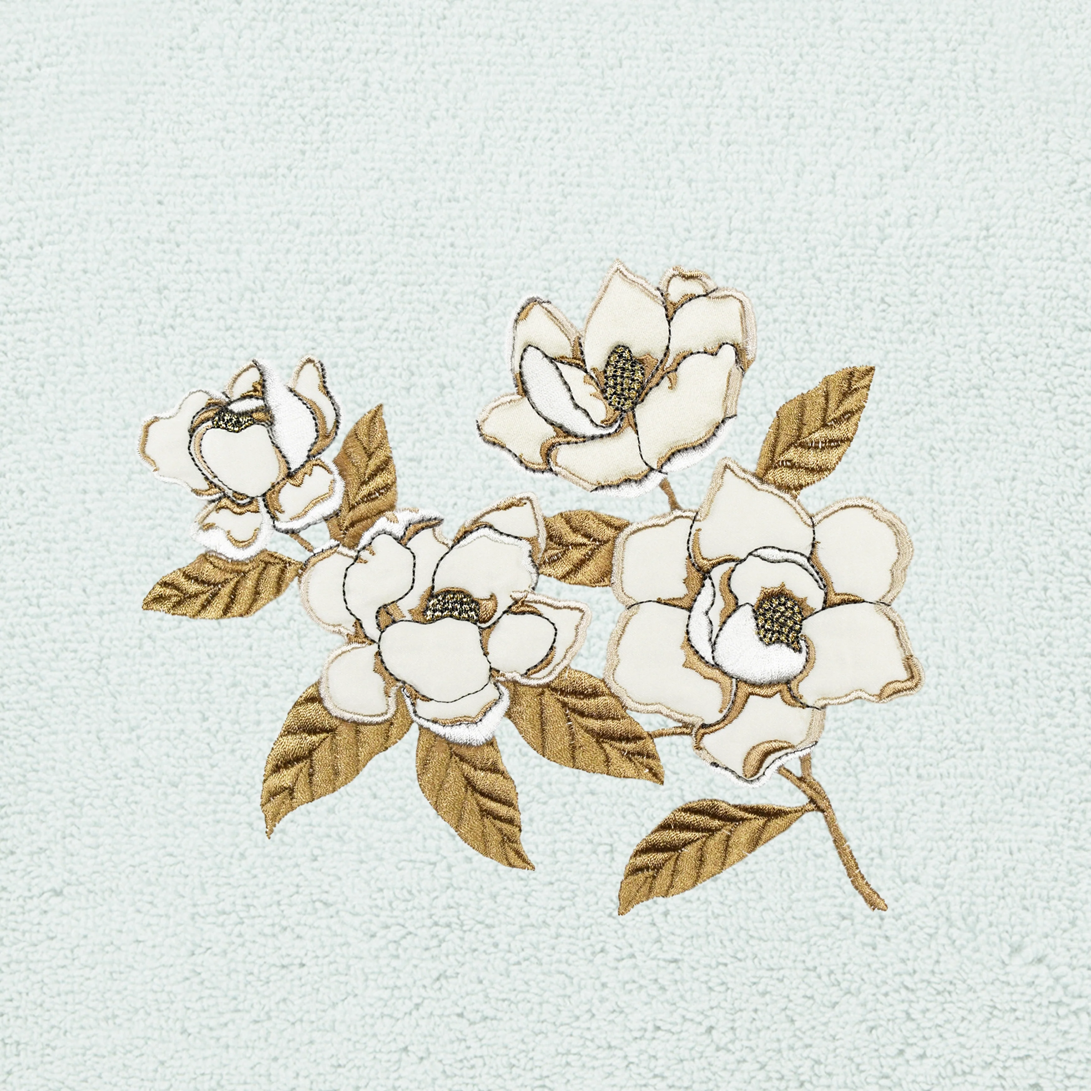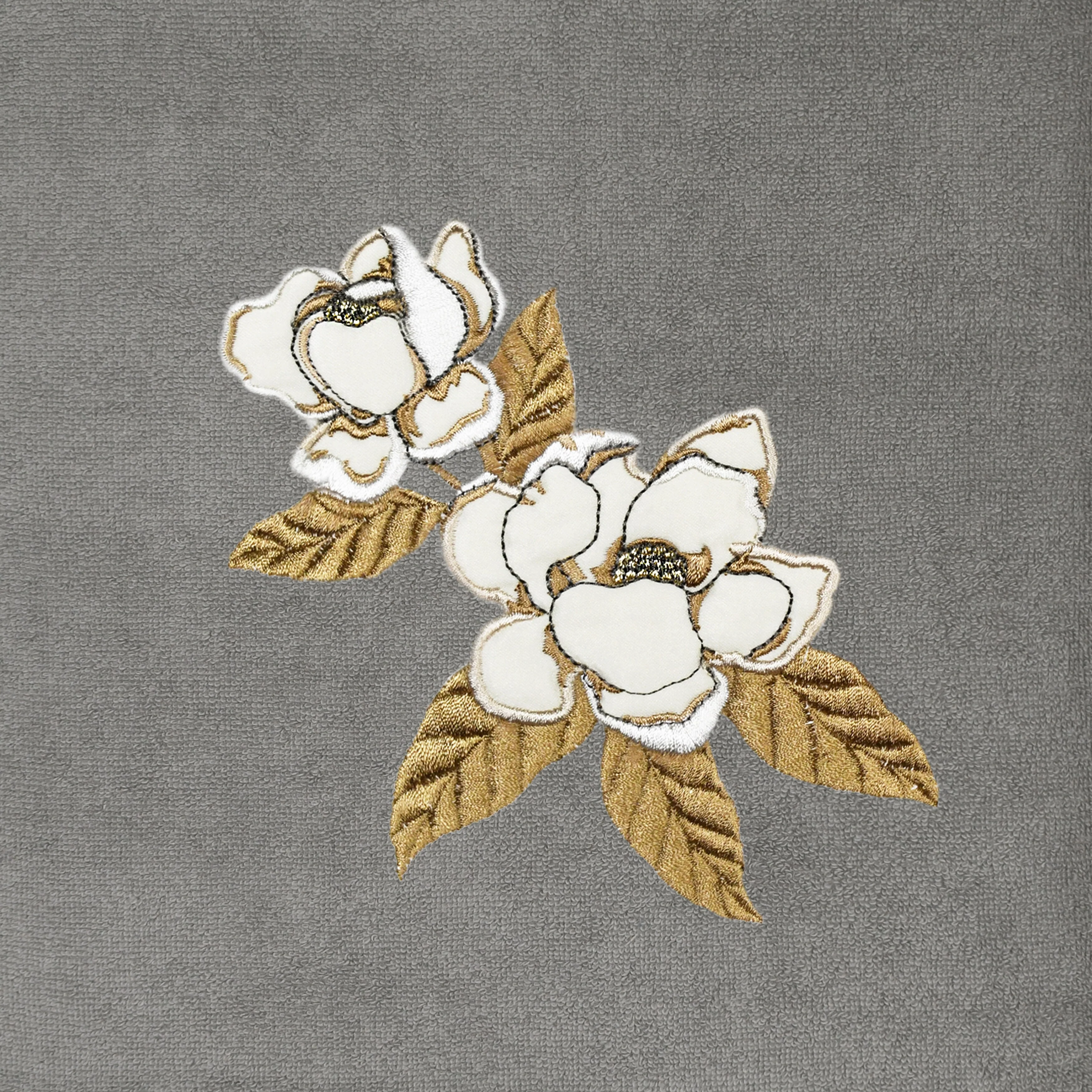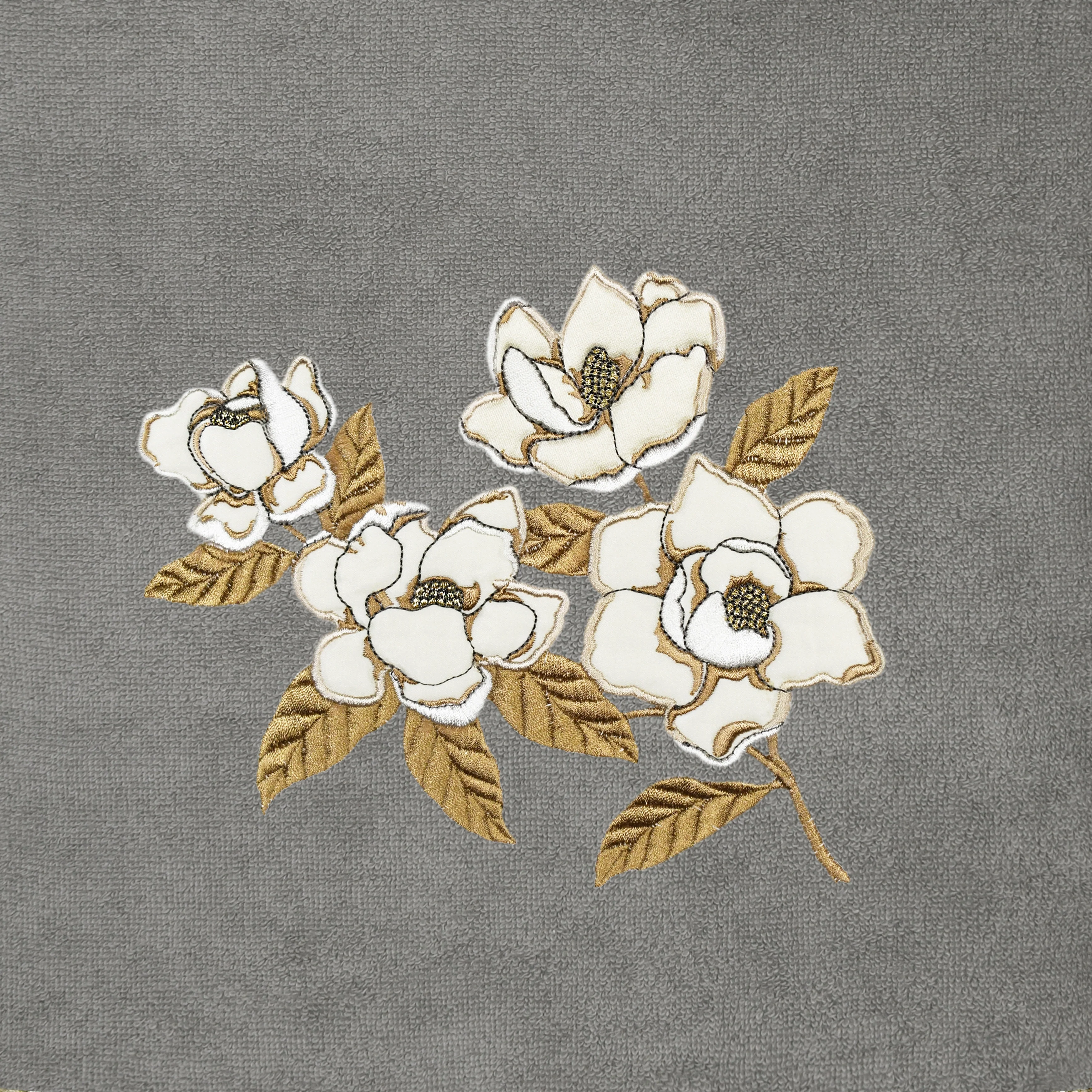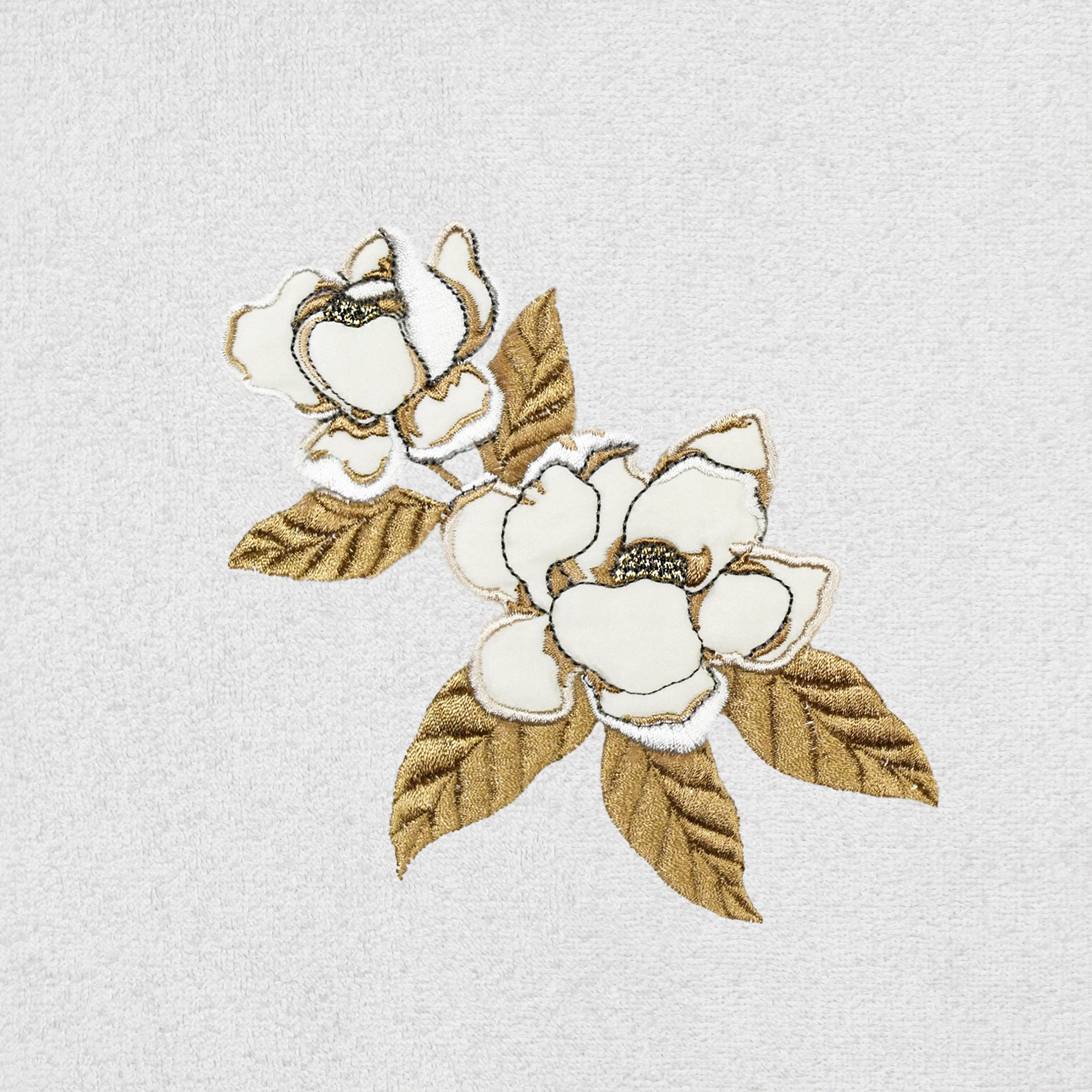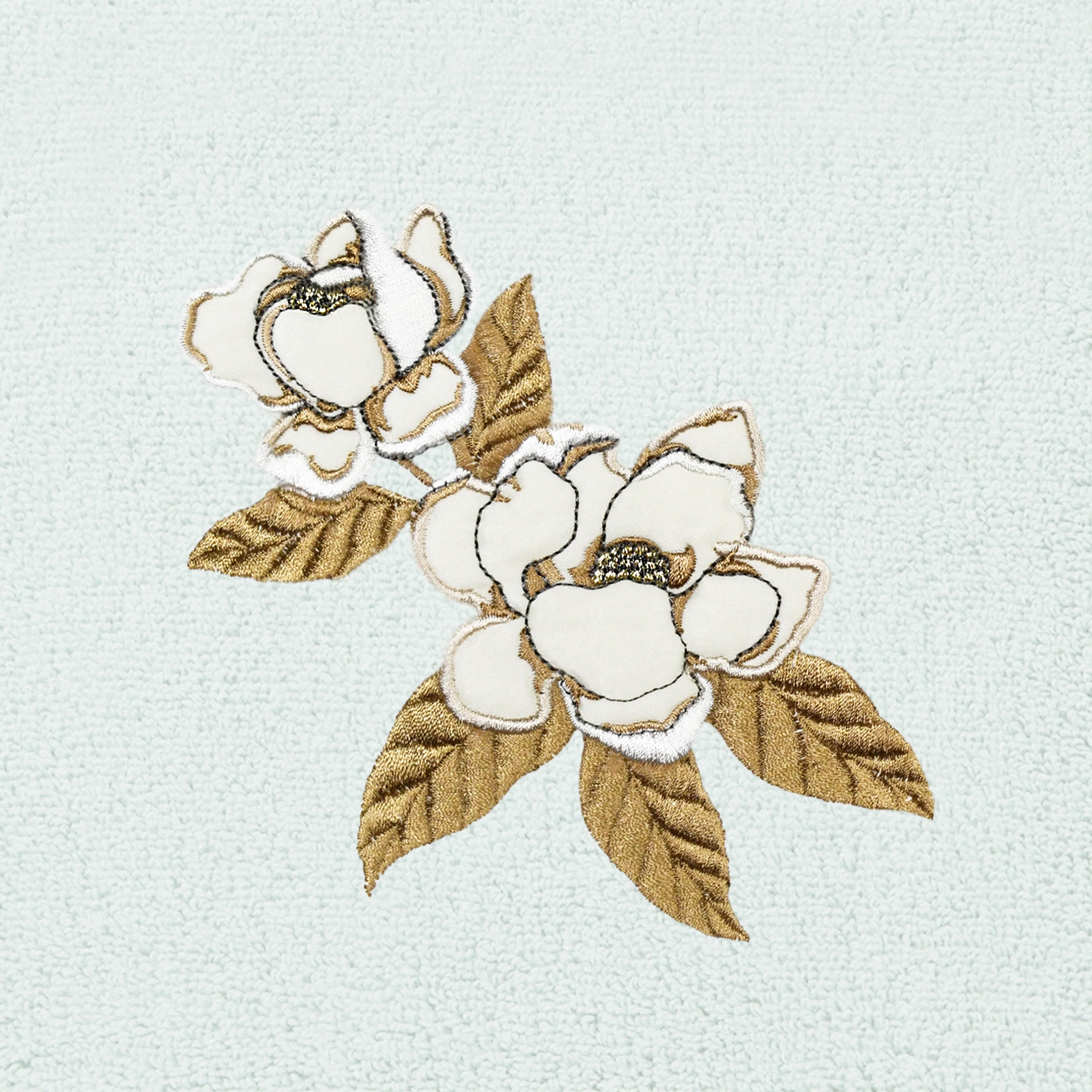 Your decorations are not complete without exquisite embroidered towels for the comfort of your family and guests. The MAGGIE towels feature a branch of lustrous applique magnolia blossoms and are trimmed with a metallic lame cord. Cloud soft and super absorbent, these luxurious, durable towels keep their plush appearance after washing. This collection is available in 8 elegant colors: White, Beige, Blush, Aqua, Silver, Cocoa, Charcoal and Marine. The MAGGIE Towel Collection brings classic spirit and richness to your home decor and makes a great gift!