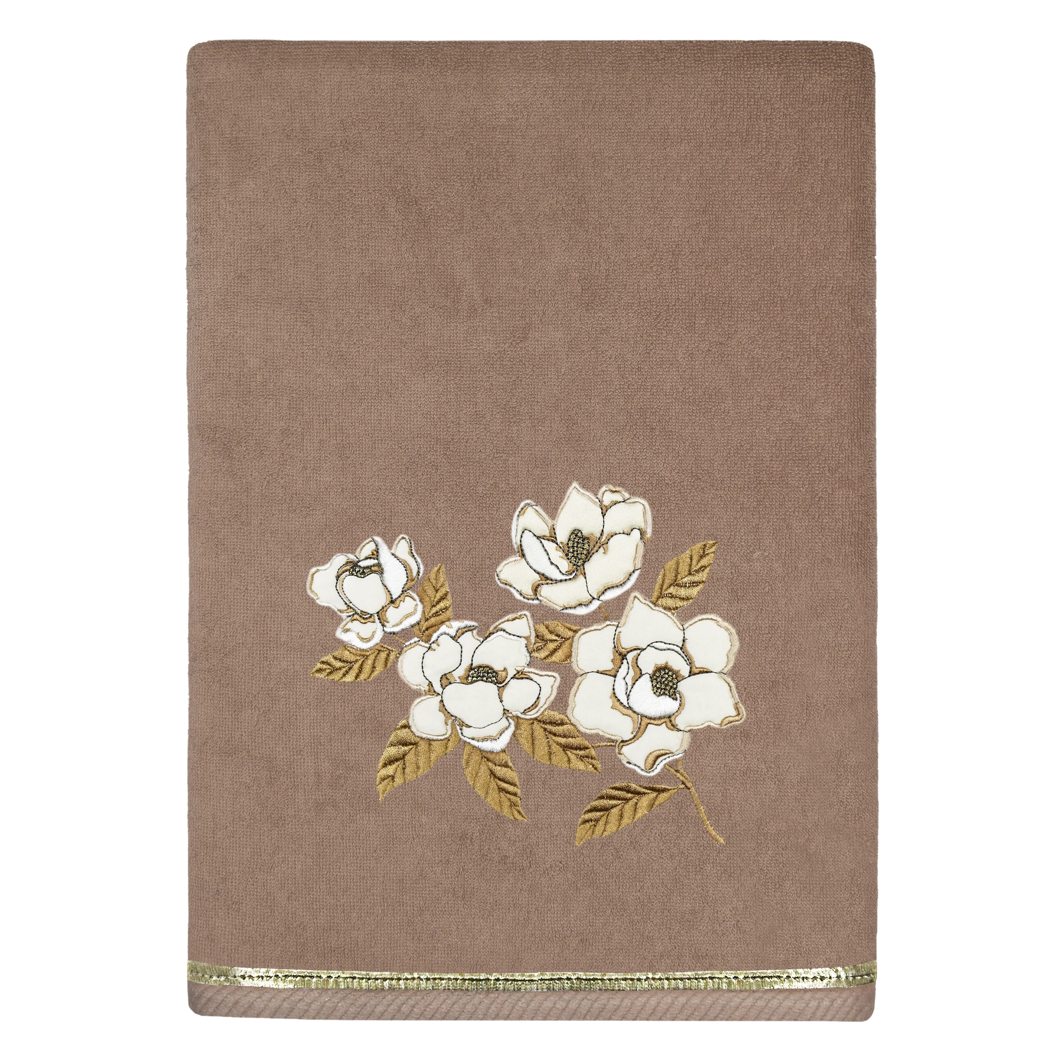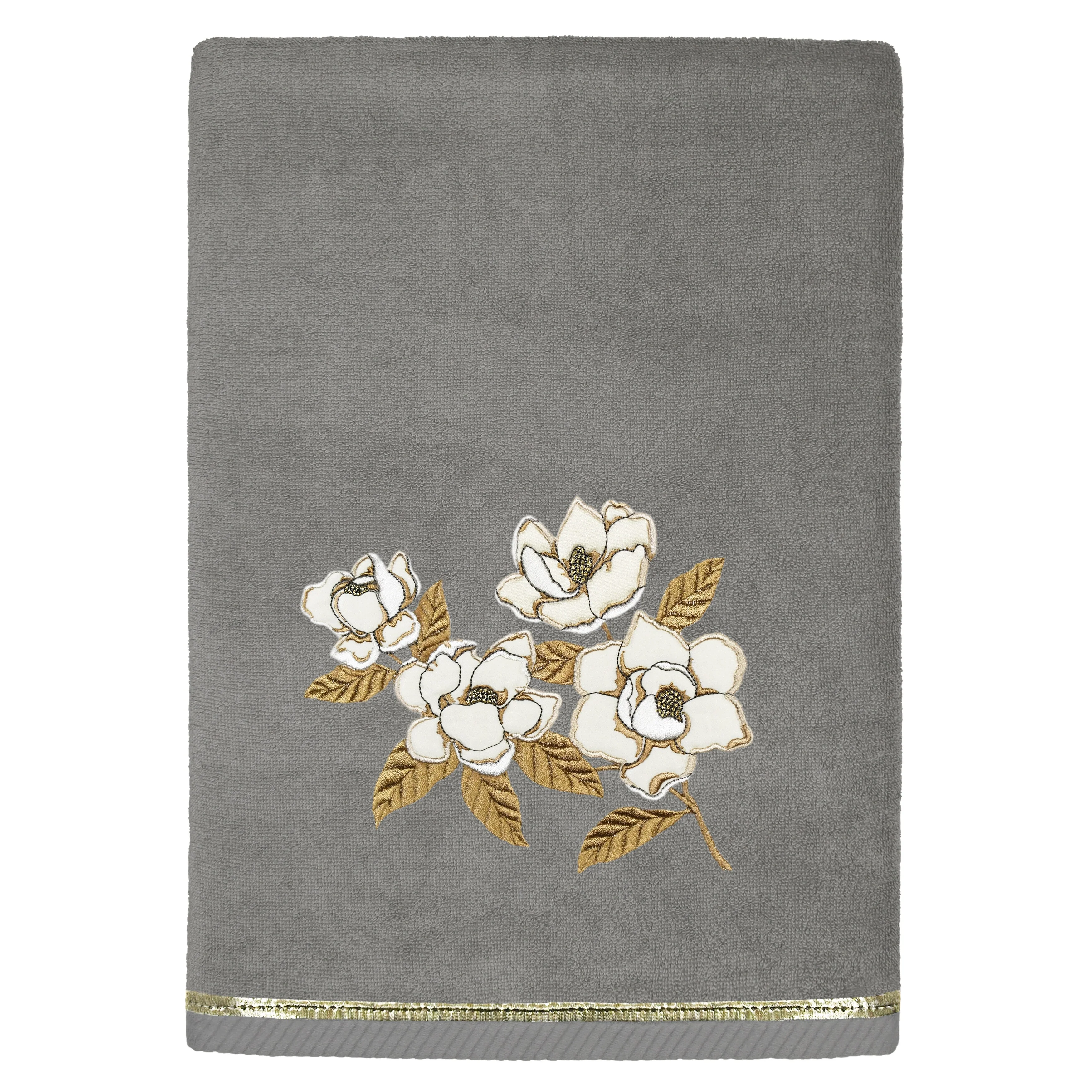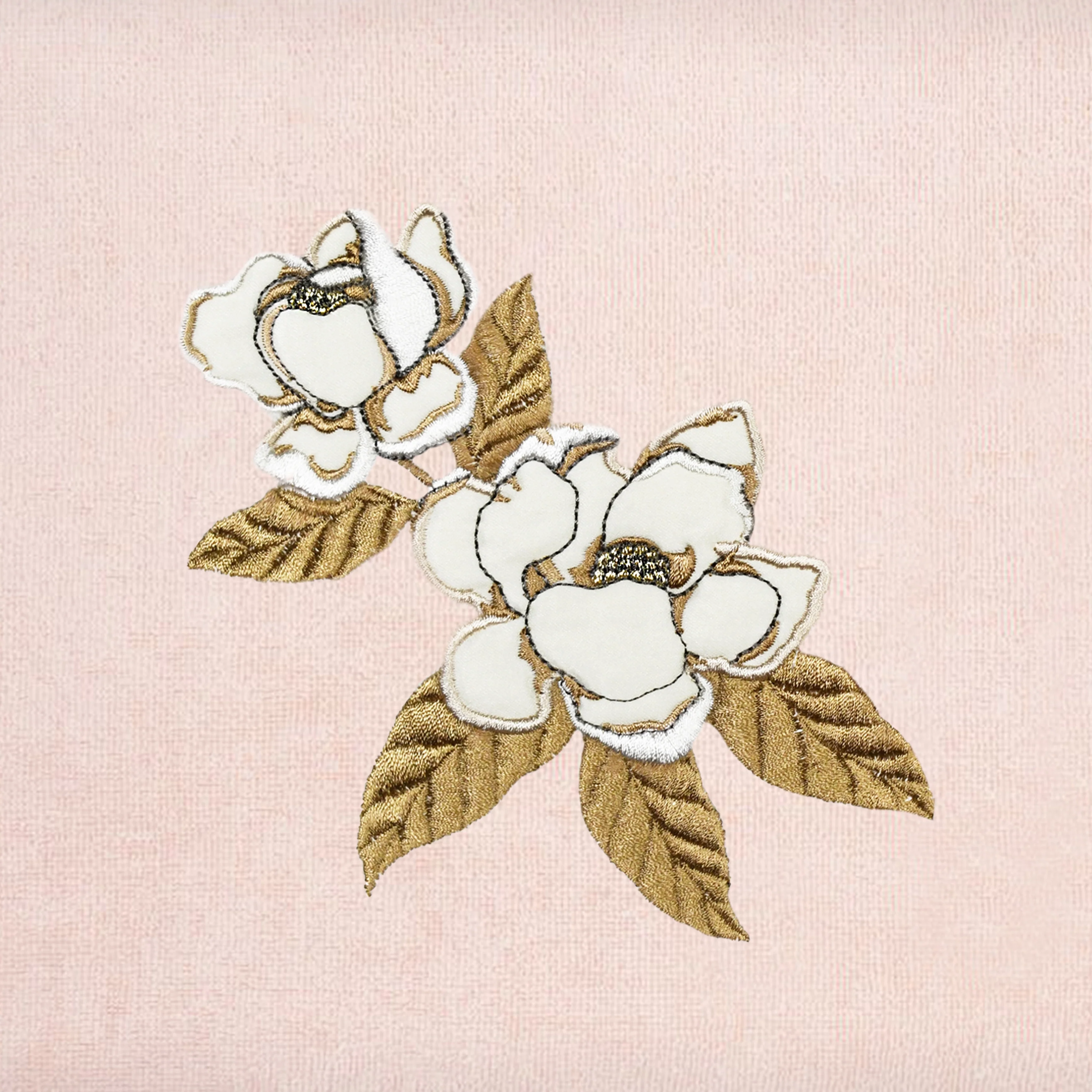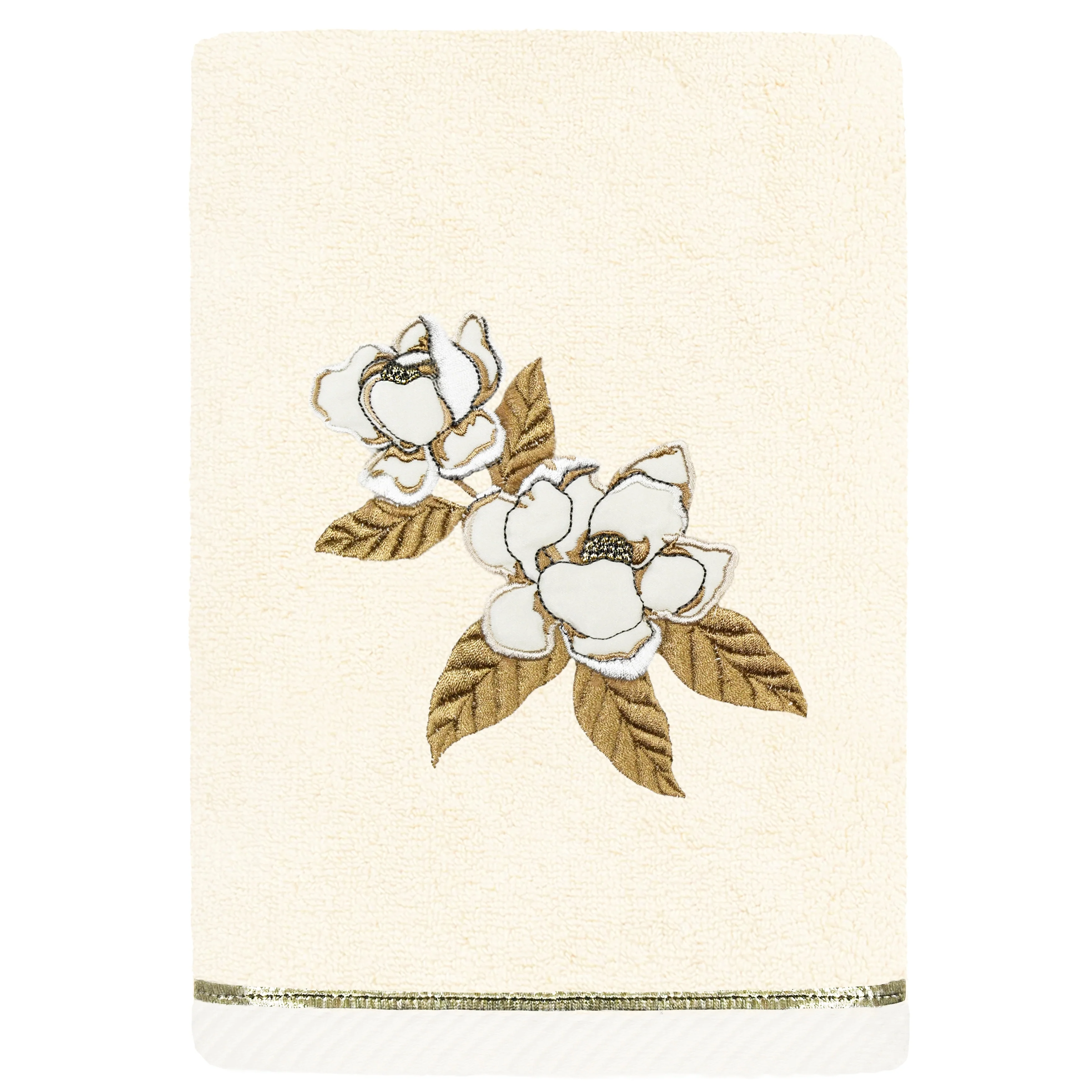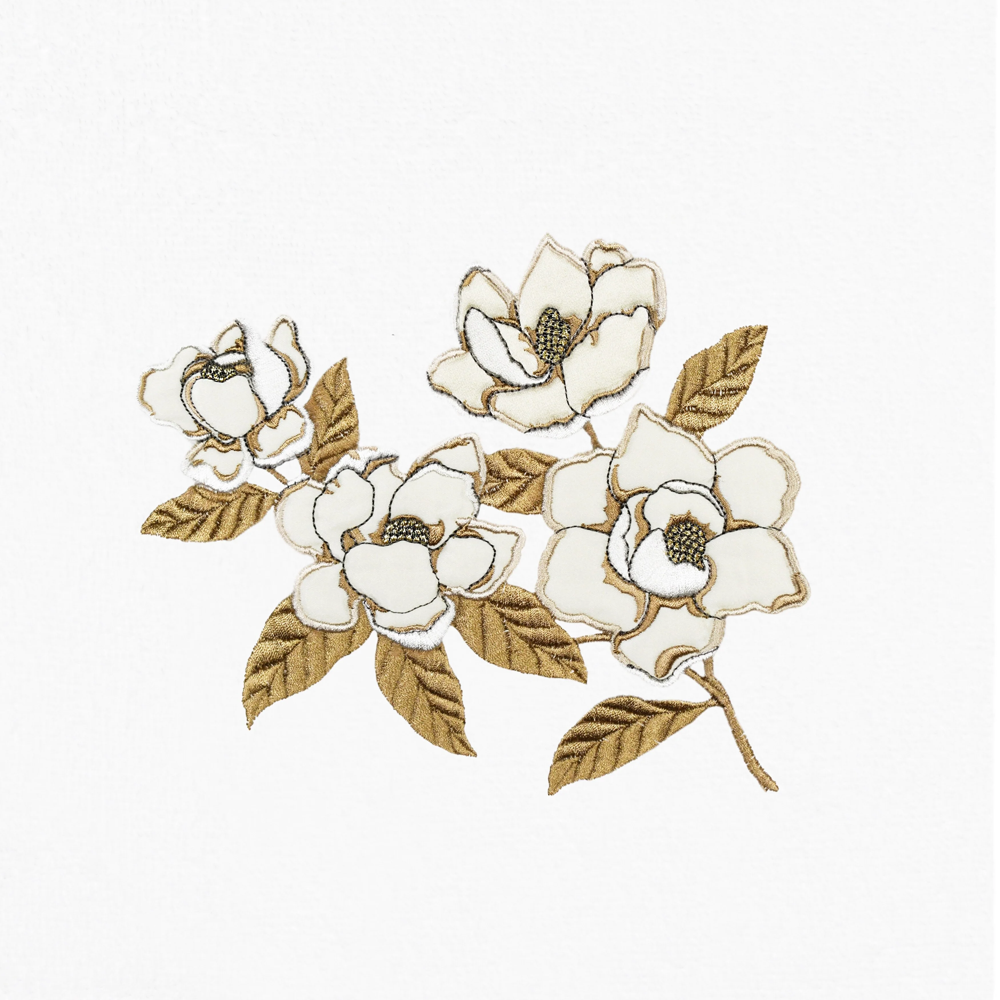 Your decorations are not complete without exquisite embroidered towels for the comfort of your family and guests. The MAGGIE towels feature a branch of lustrous applique magnolia blossoms and are trimmed with a metallic lame cord. Cloud soft and super absorbent, these luxurious, durable towels keep their plush appearance after washing. This collection is available in 8 elegant colors: White, Beige, Blush, Aqua, Silver, Cocoa, Charcoal and Marine. The MAGGIE Towel Collection brings classic spirit and richness to your home decor and makes a great gift!