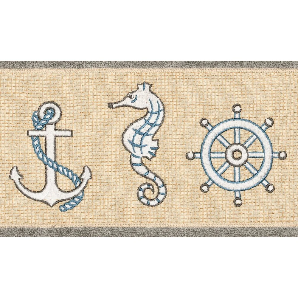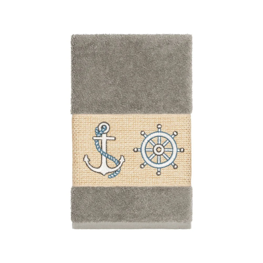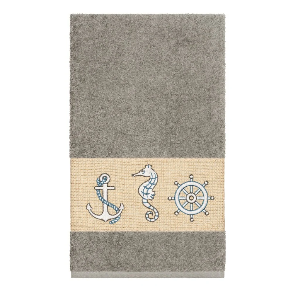 This authentic hotel and spa 4-piece towel set is made from plush, high end Turkish cotton for supreme absorbency and durability. The beautiful dark grey towels are embellished with a nautical embroidery design to add that special touch to your bathroom.