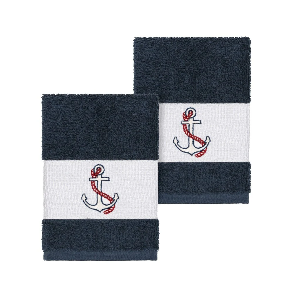 This authentic hotel and spa hand towel is made from plush, high end Turkish cotton for supreme absorbency and durability. This beautiful dark grey towel is embellished with a nautical embroidery design to add that special touch to your bathroom.