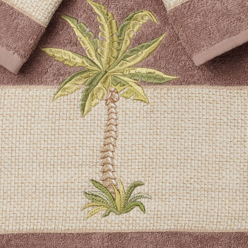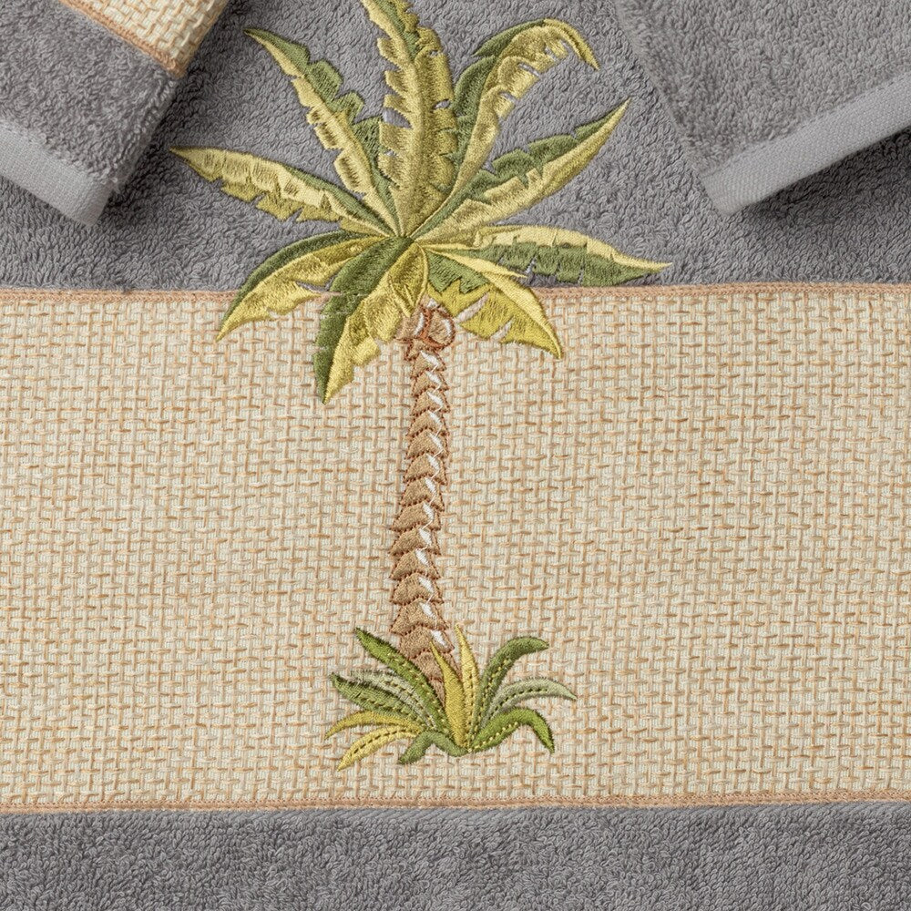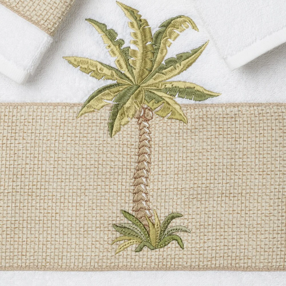 This authentic hotel and spa 3-piece towel set is made from plush, high end Turkish cotton for supreme absorbency and durability. These beautiful towels are embellished with a palm tree applique and embroidery design with a textured woven border to add that special touch to your bathroom.