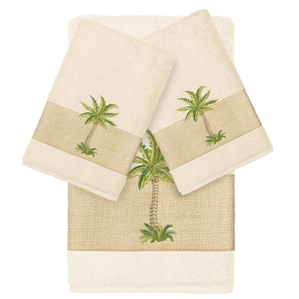 Authentic Hotel and Spa Turkish Cotton Palm Tree Embroidered Charcoal Grey Bath Towels (Set of 2)