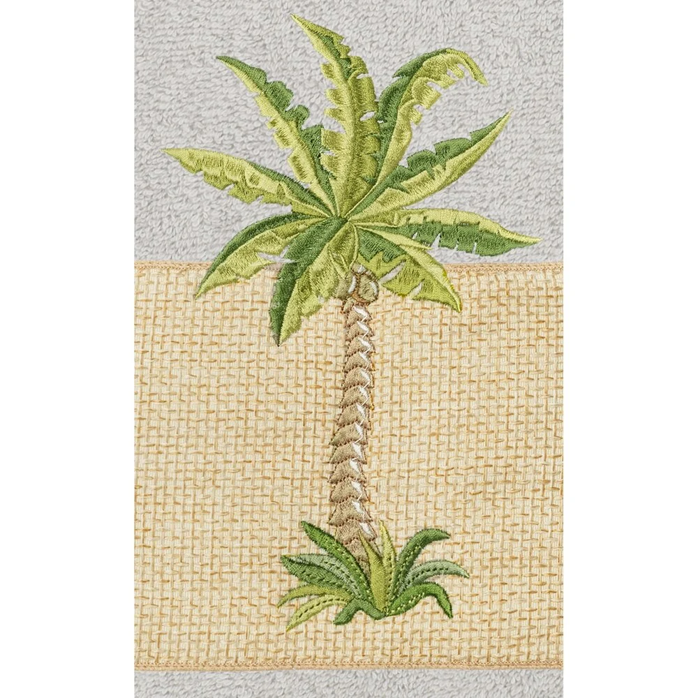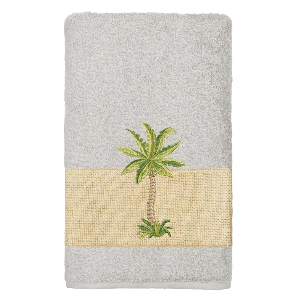 This authentic hotel and spa 8-piece towel set is made from plush, high end Turkish cotton for supreme absorbency and durability. The beautiful light grey towels are embellished with a palm tree applique and embroidery design with a textured woven border to add that special touch to your bathroom.