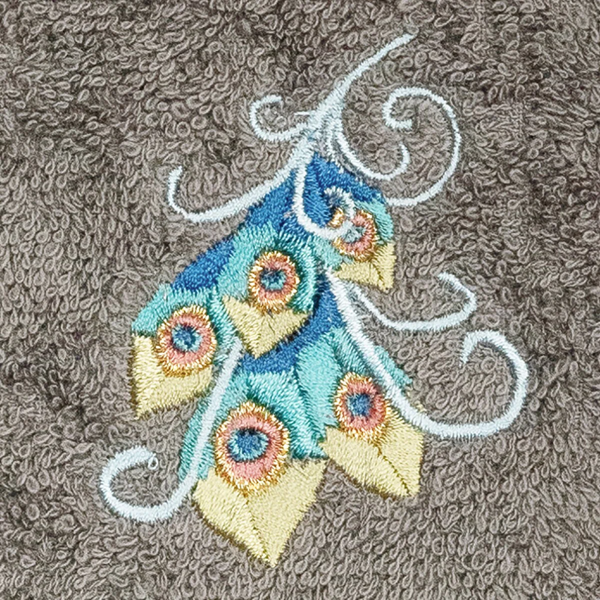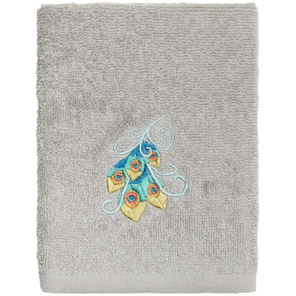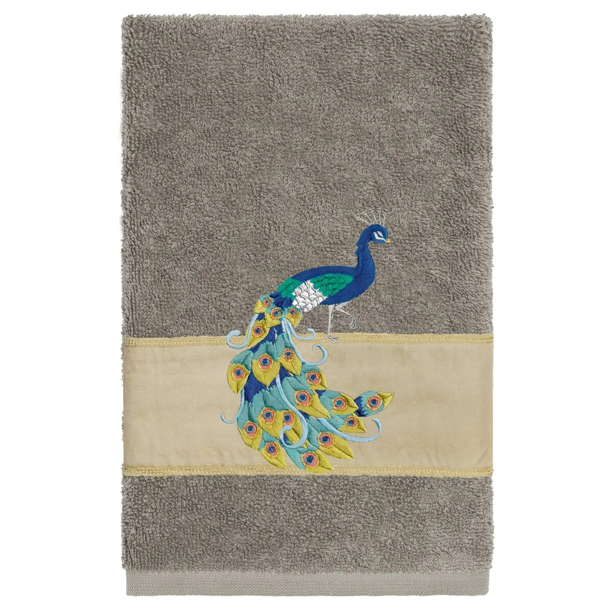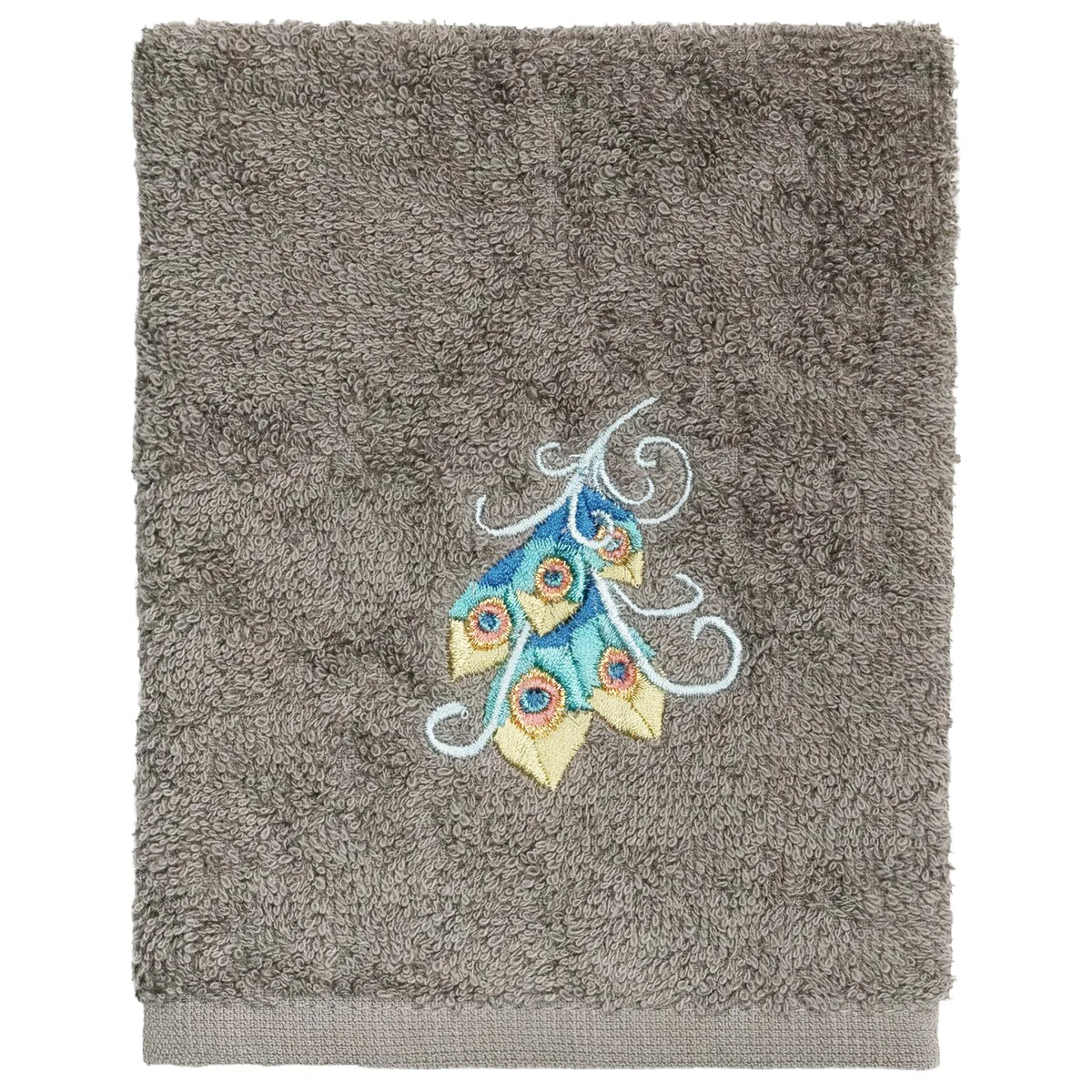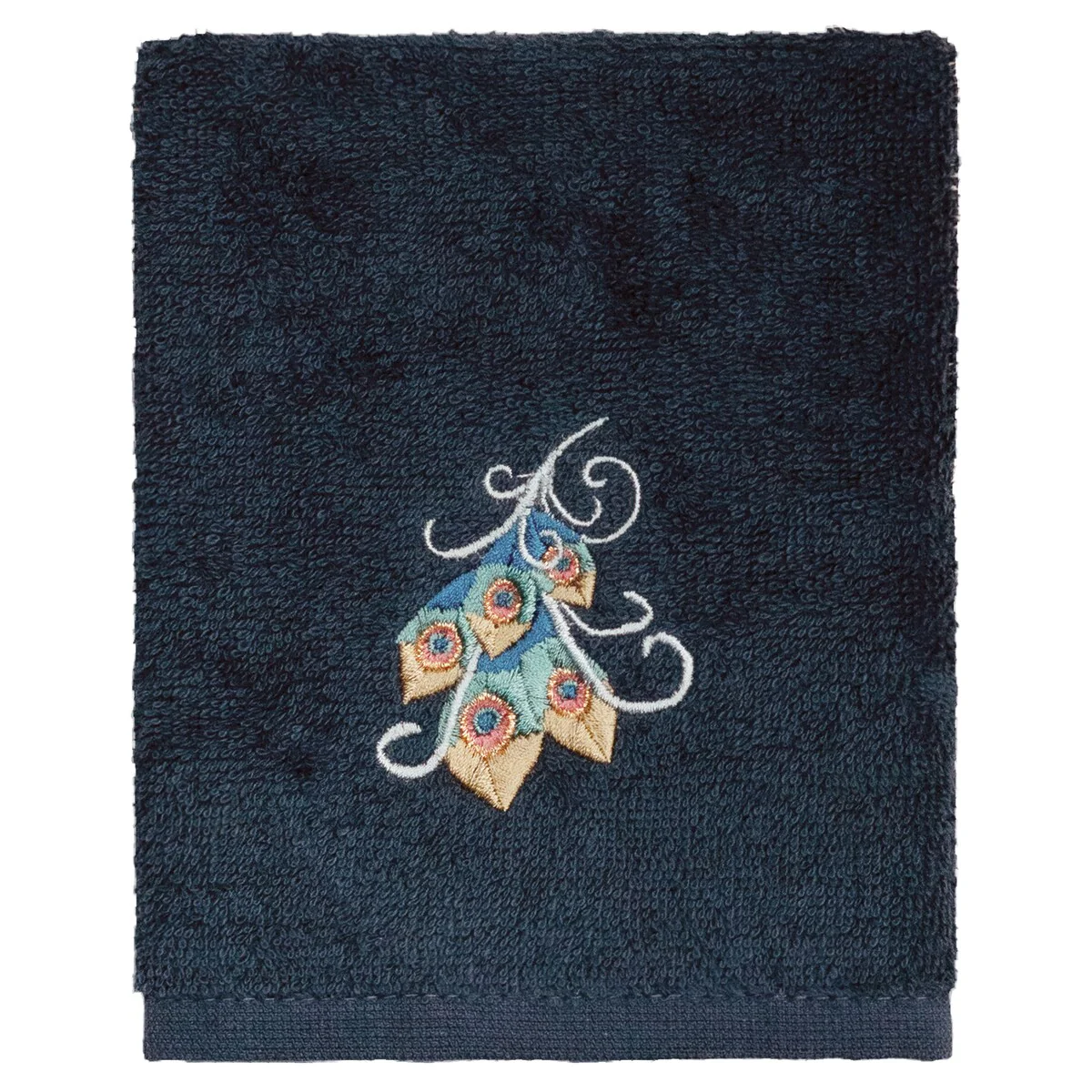 Your decorations are not complete without exotic embroidered towels for the comfort of your family and guests. The Penelope towels feature an intricate peacock embroidery on a sparkling tafetta border. Cloud soft and super absorbent, these luxurious, durable towels keep their plush appearance after washing. This collection is available in 7 elegant colors: White, Cream, Latte, Teal, Navy, Light Gray and Dark Gray. The Penelope Towel Collection brings a glamorous spirit and richness to your home decor and makes a great gift!