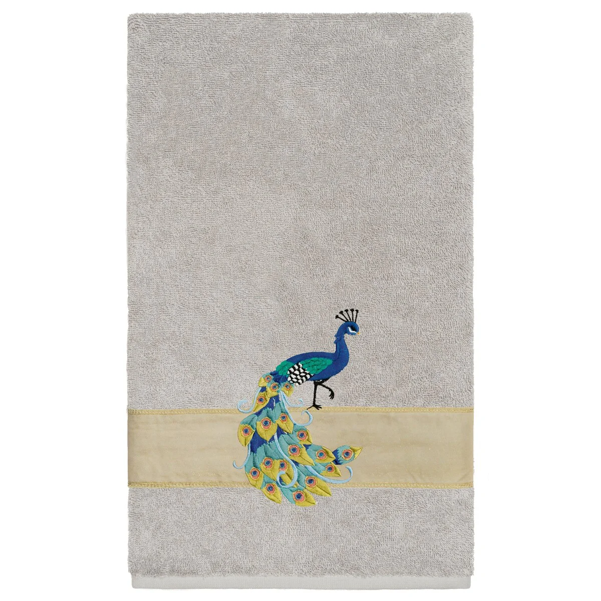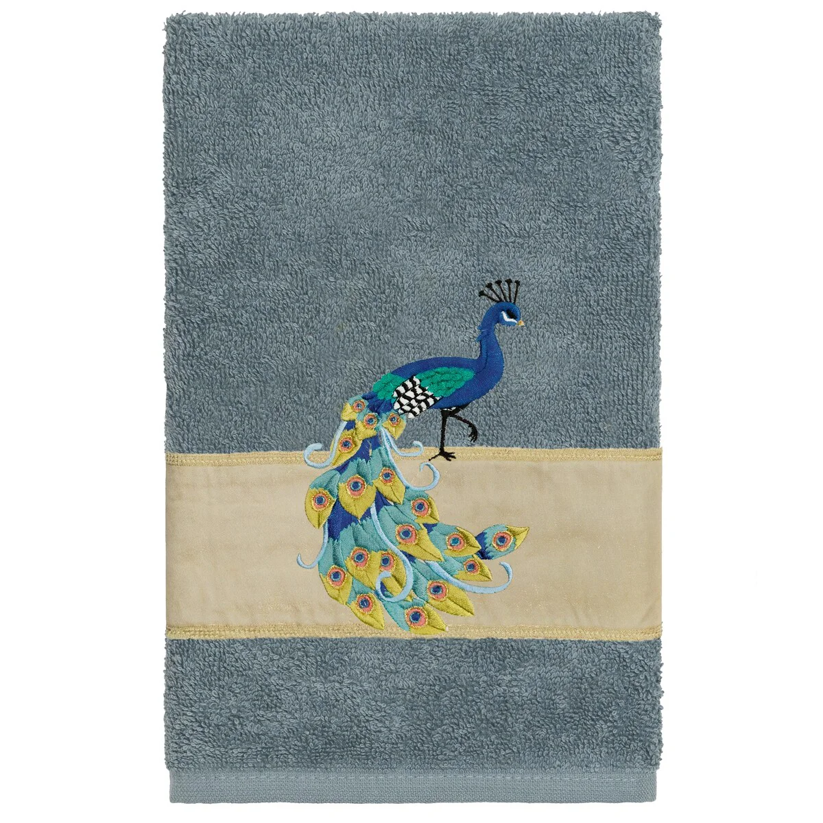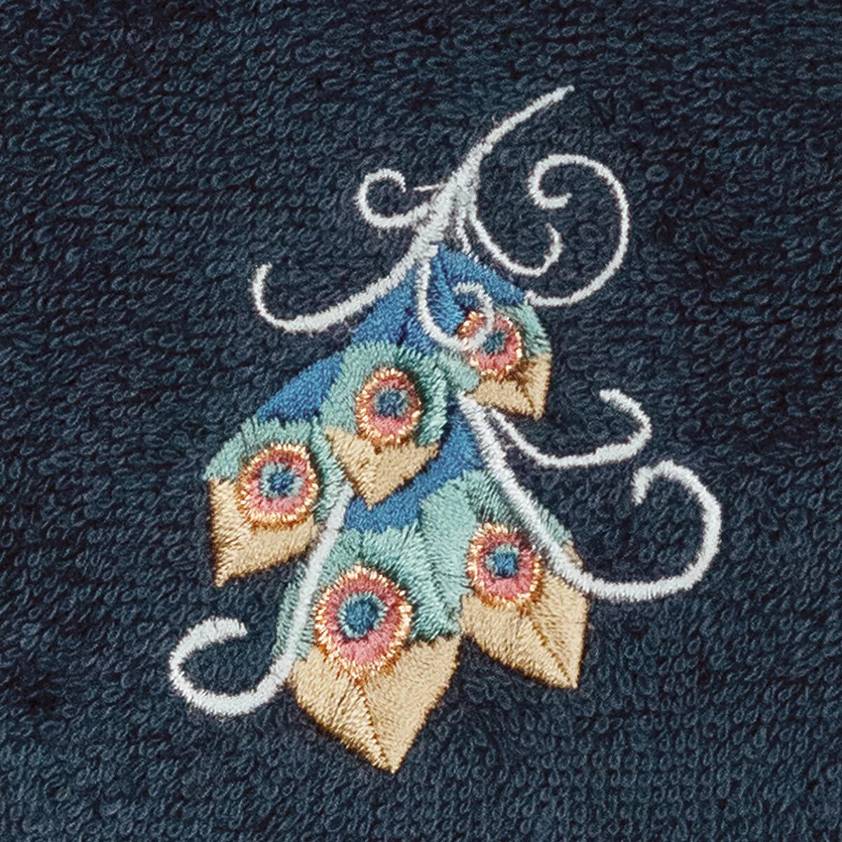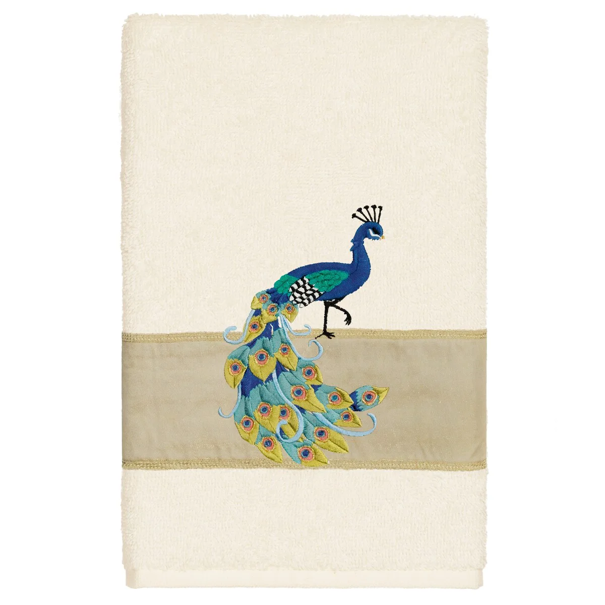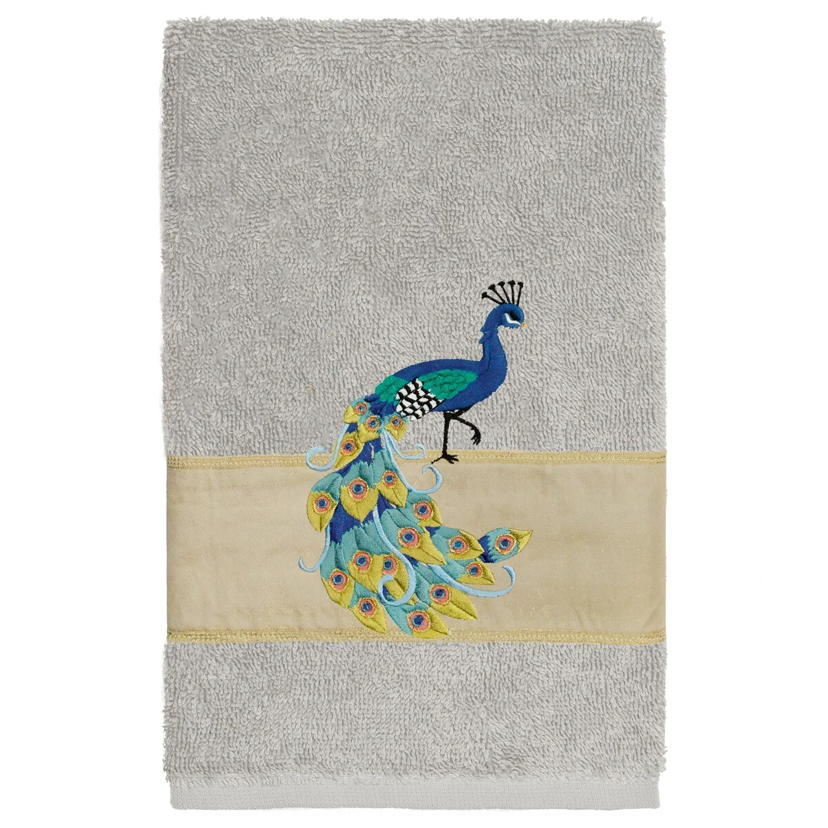 Your decorations are not complete without exotic embroidered towels for the comfort of your family and guests. The Penelope towels feature an intricate peacock embroidery on a sparkling tafetta border. Cloud soft and super absorbent, these luxurious, durable towels keep their plush appearance after washing. This collection is available in 7 elegant colors: White, Cream, Latte, Teal, Navy, Light Gray and Dark Gray. The Penelope Towel Collection brings a glamorous spirit and richness to your home decor and makes a great gift!