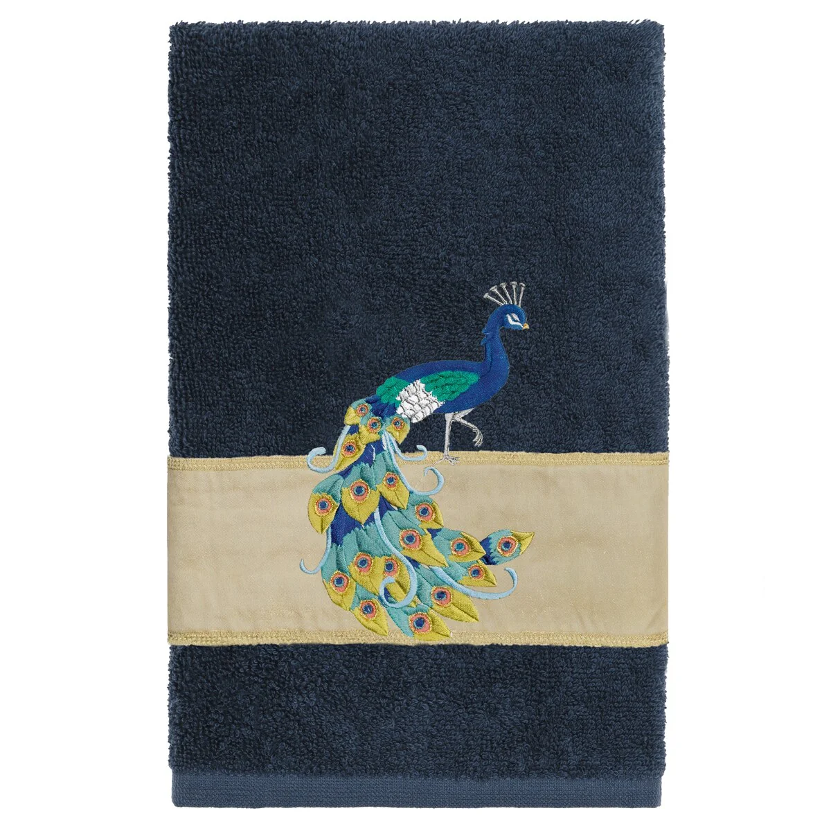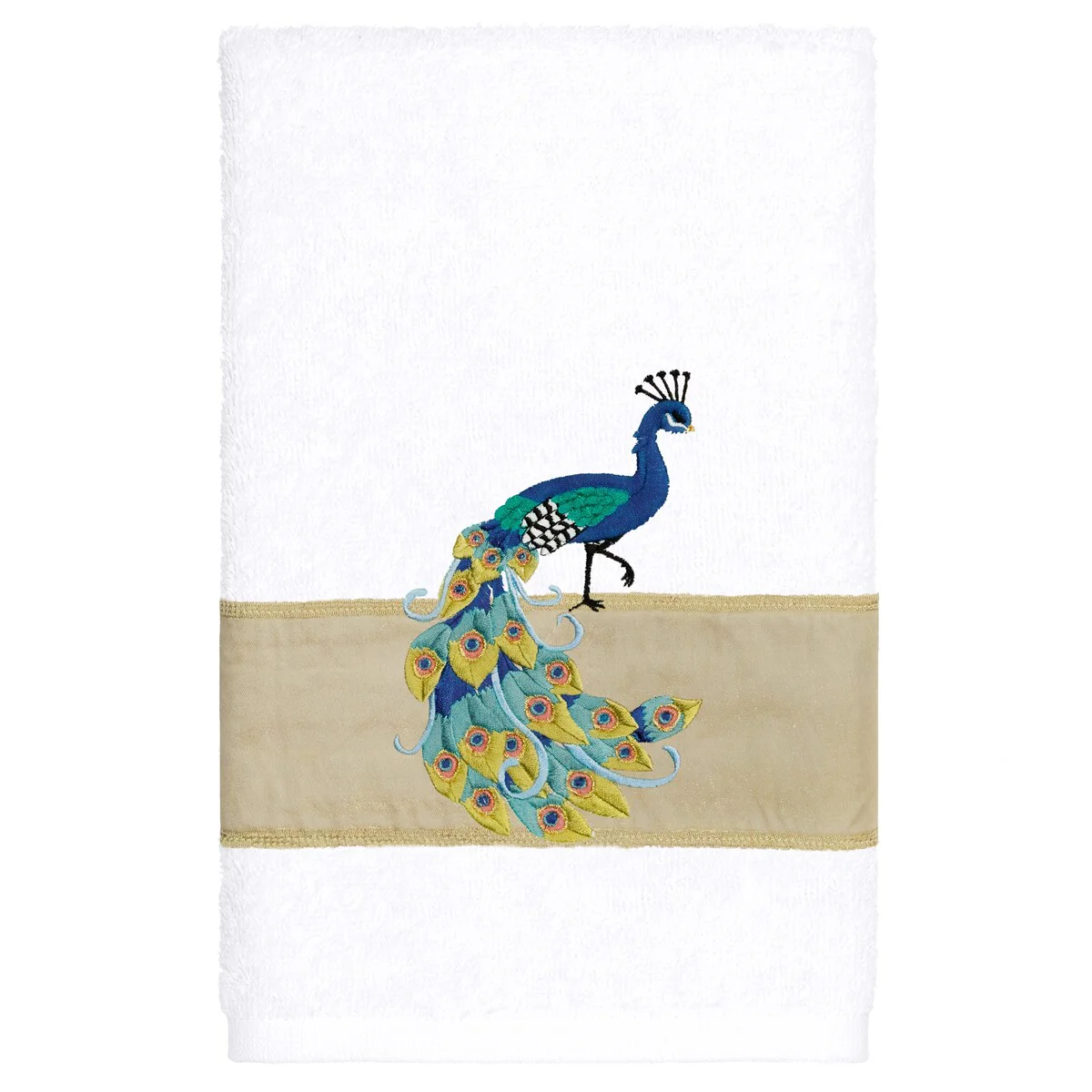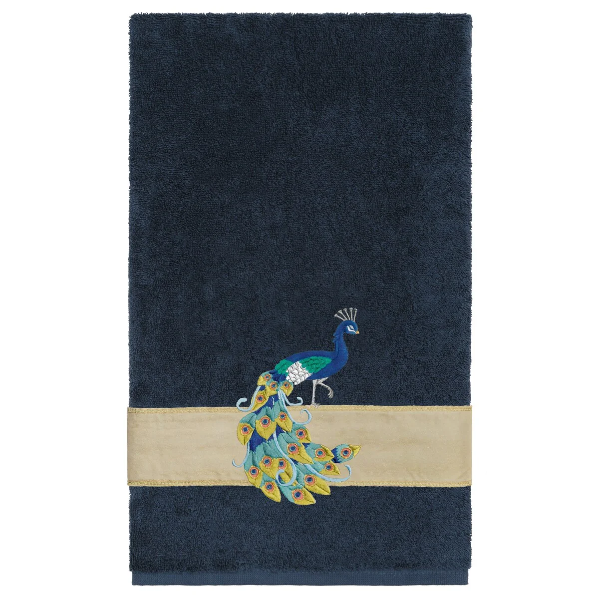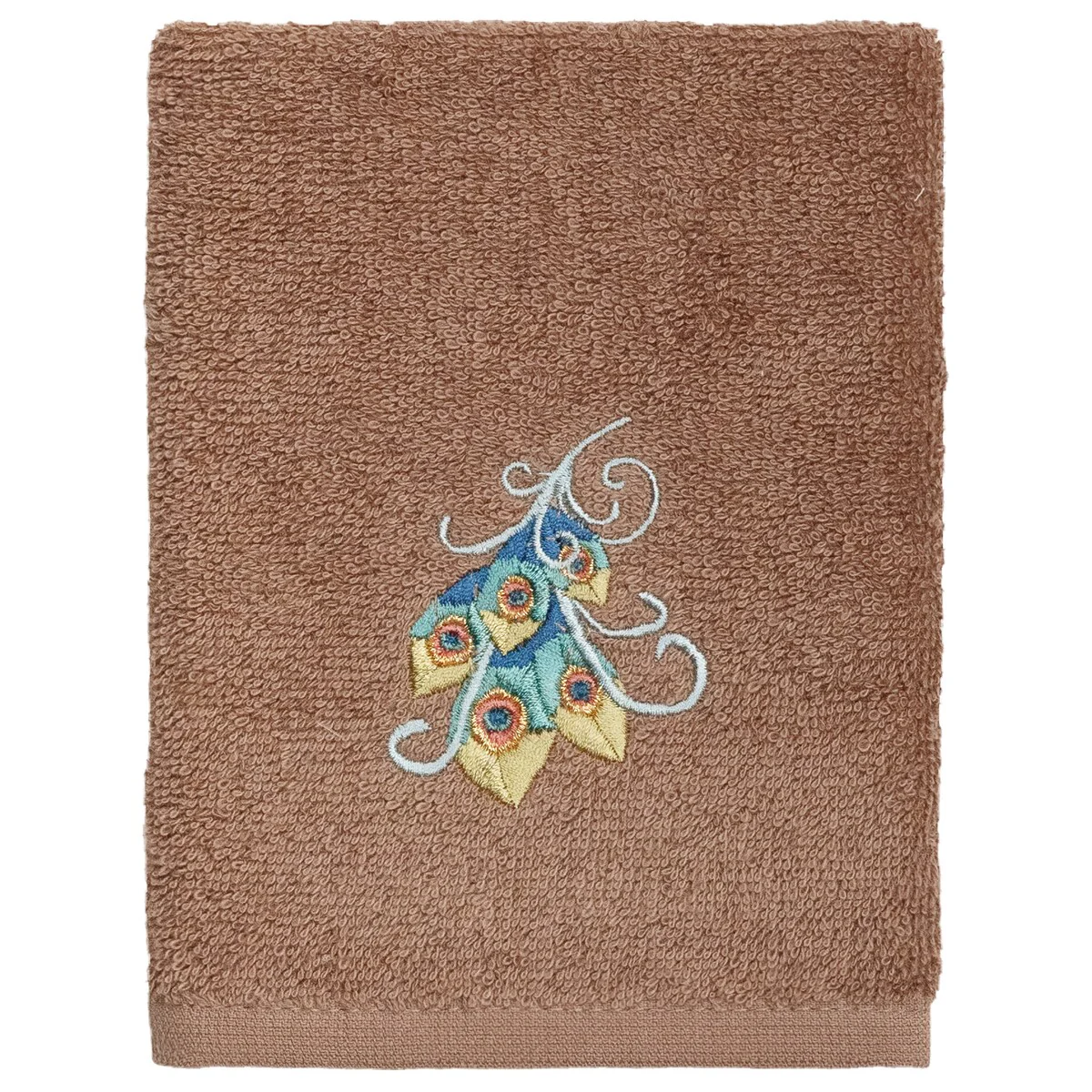 Your decorations are not complete without exotic embroidered towels for the comfort of your family and guests. The Penelope towels feature an intricate peacock embroidery on a sparkling tafetta border. Cloud soft and super absorbent, these luxurious, durable towels keep their plush appearance after washing. This collection is available in 7 elegant colors: White, Cream, Latte, Teal, Navy, Light Gray and Dark Gray. The Penelope Towel Collection brings a glamorous spirit and richness to your home decor and makes a great gift!