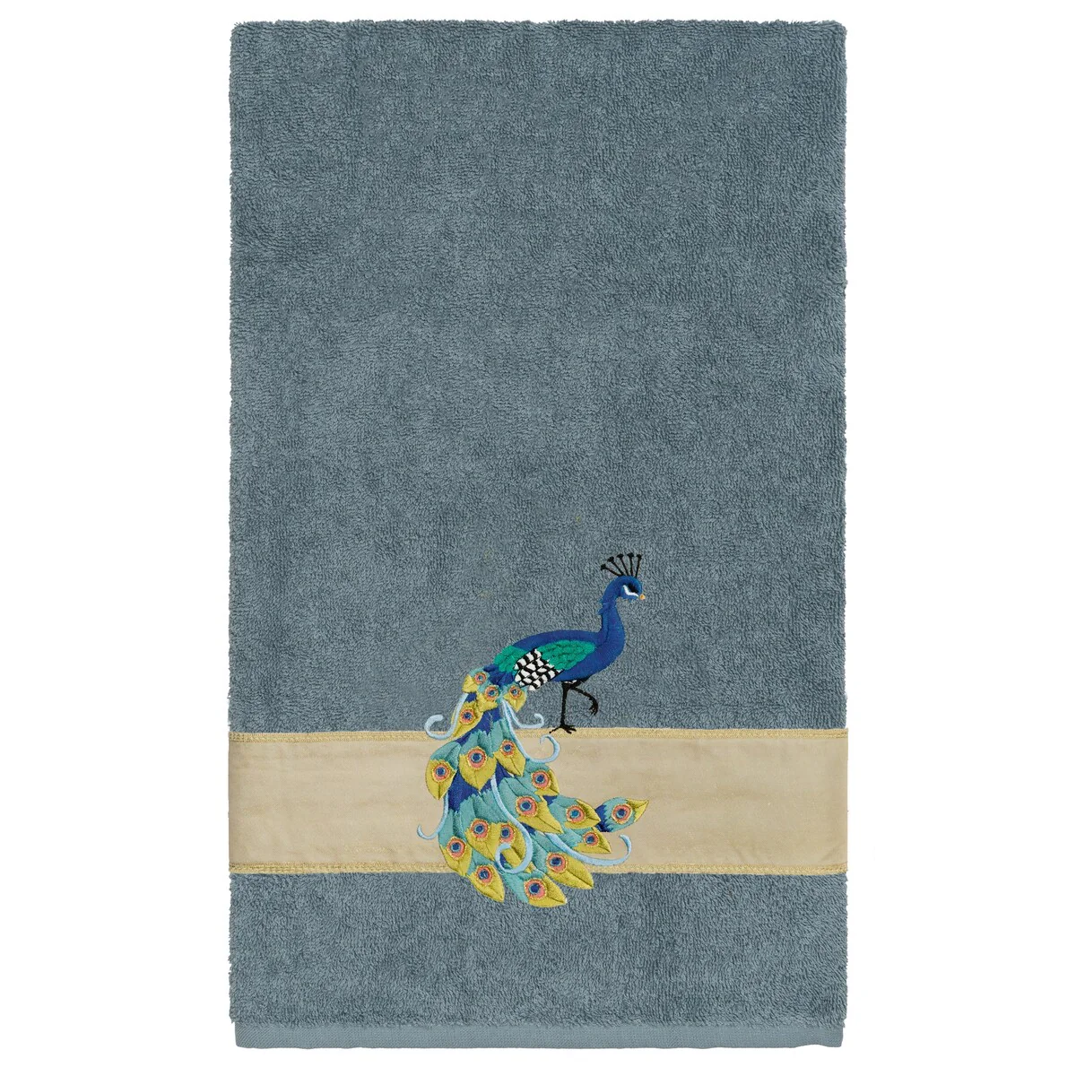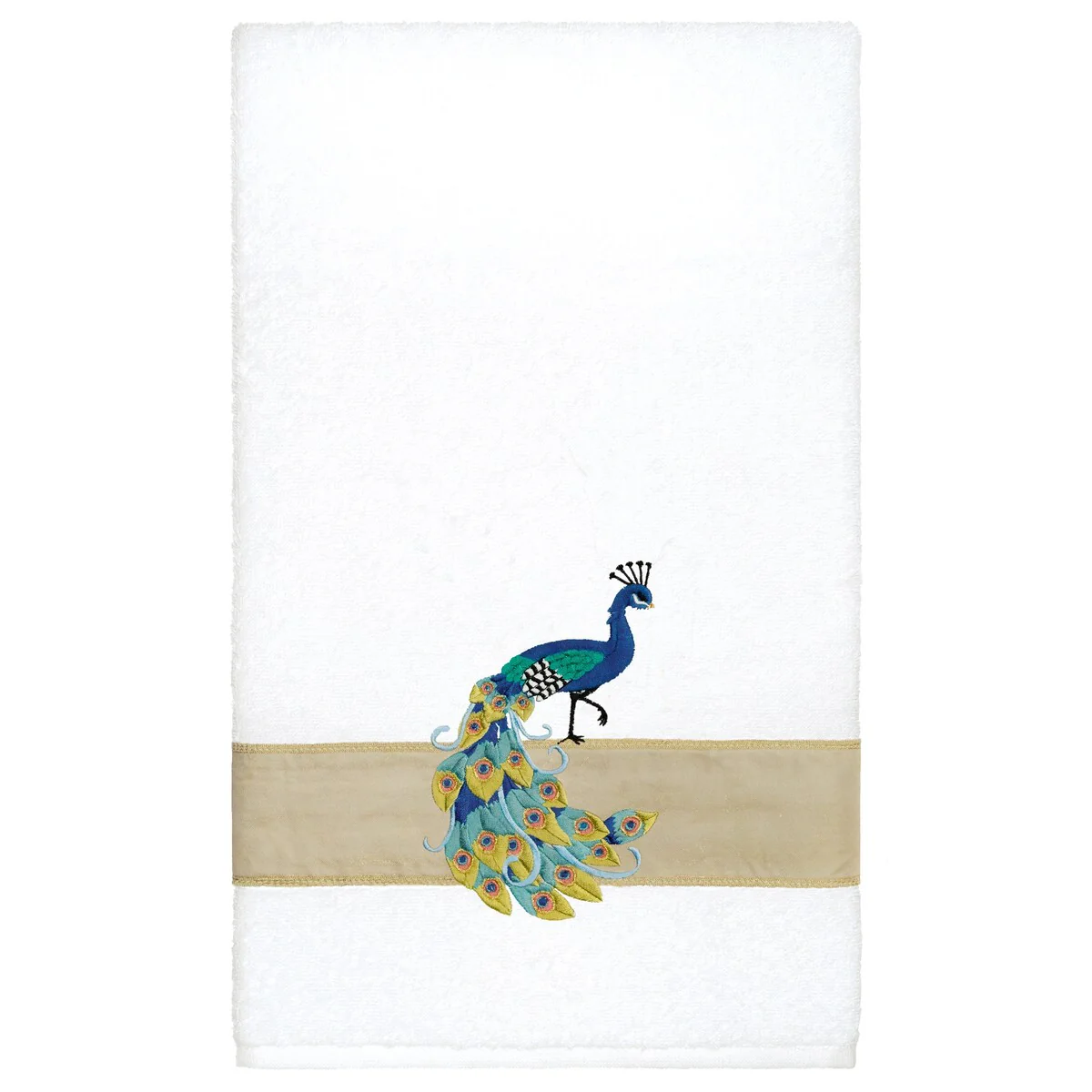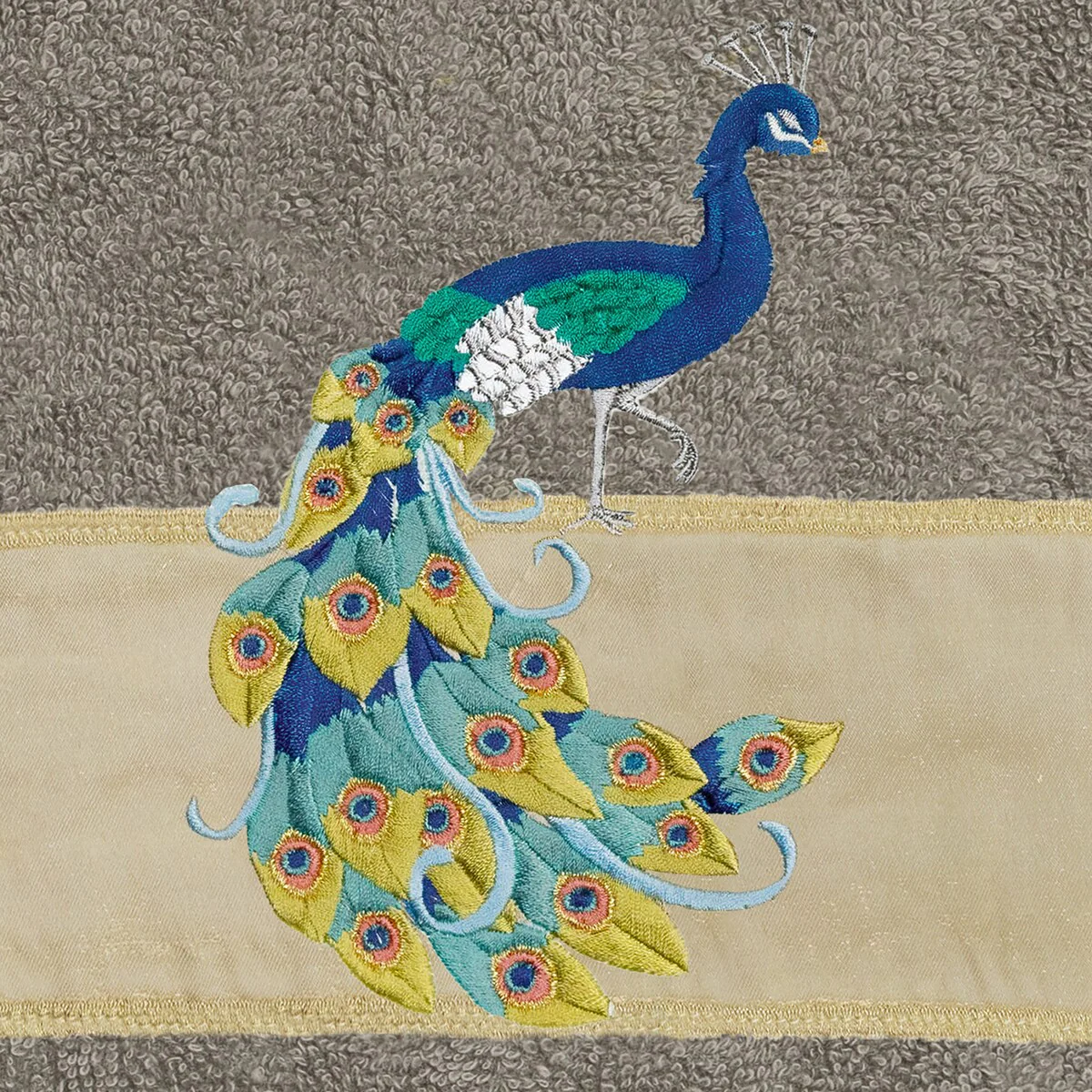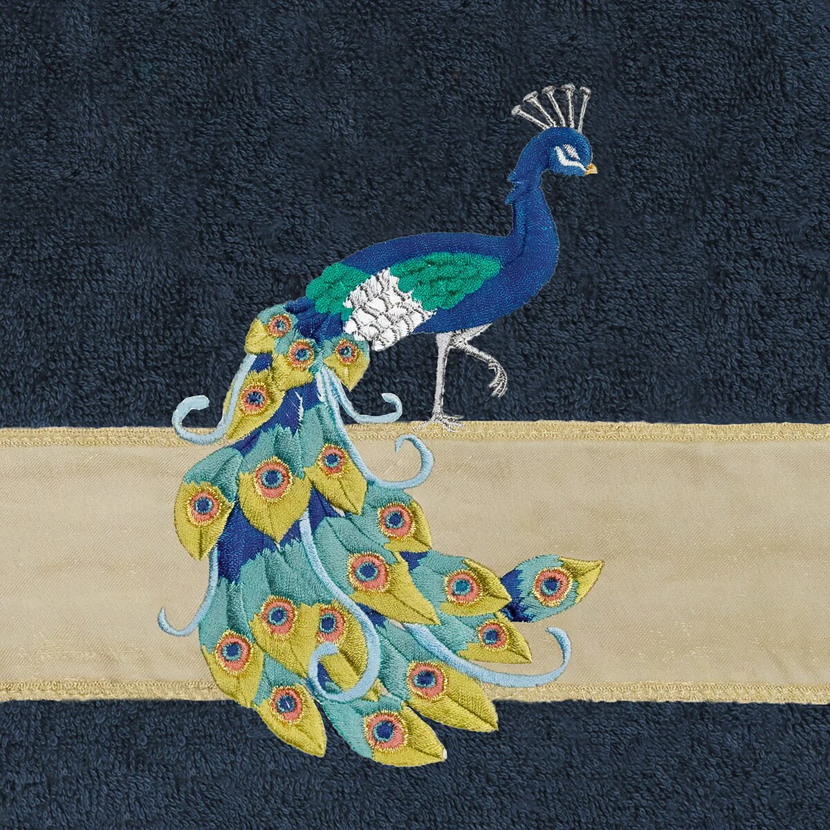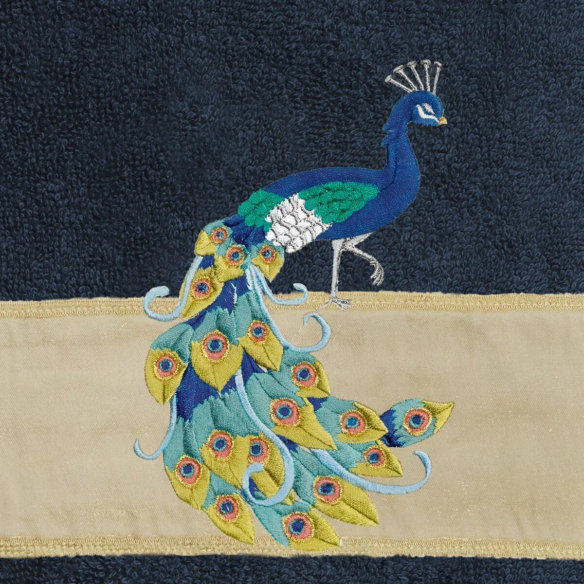 Your decorations are not complete without exotic embroidered towels for the comfort of your family and guests. The Penelope towels feature an intricate peacock embroidery on a sparkling tafetta border. Cloud soft and super absorbent, these luxurious, durable towels keep their plush appearance after washing. This collection is available in 7 elegant colors: White, Cream, Latte, Teal, Navy, Light Gray and Dark Gray. The Penelope Towel Collection brings a glamorous spirit and richness to your home decor and makes a great gift!