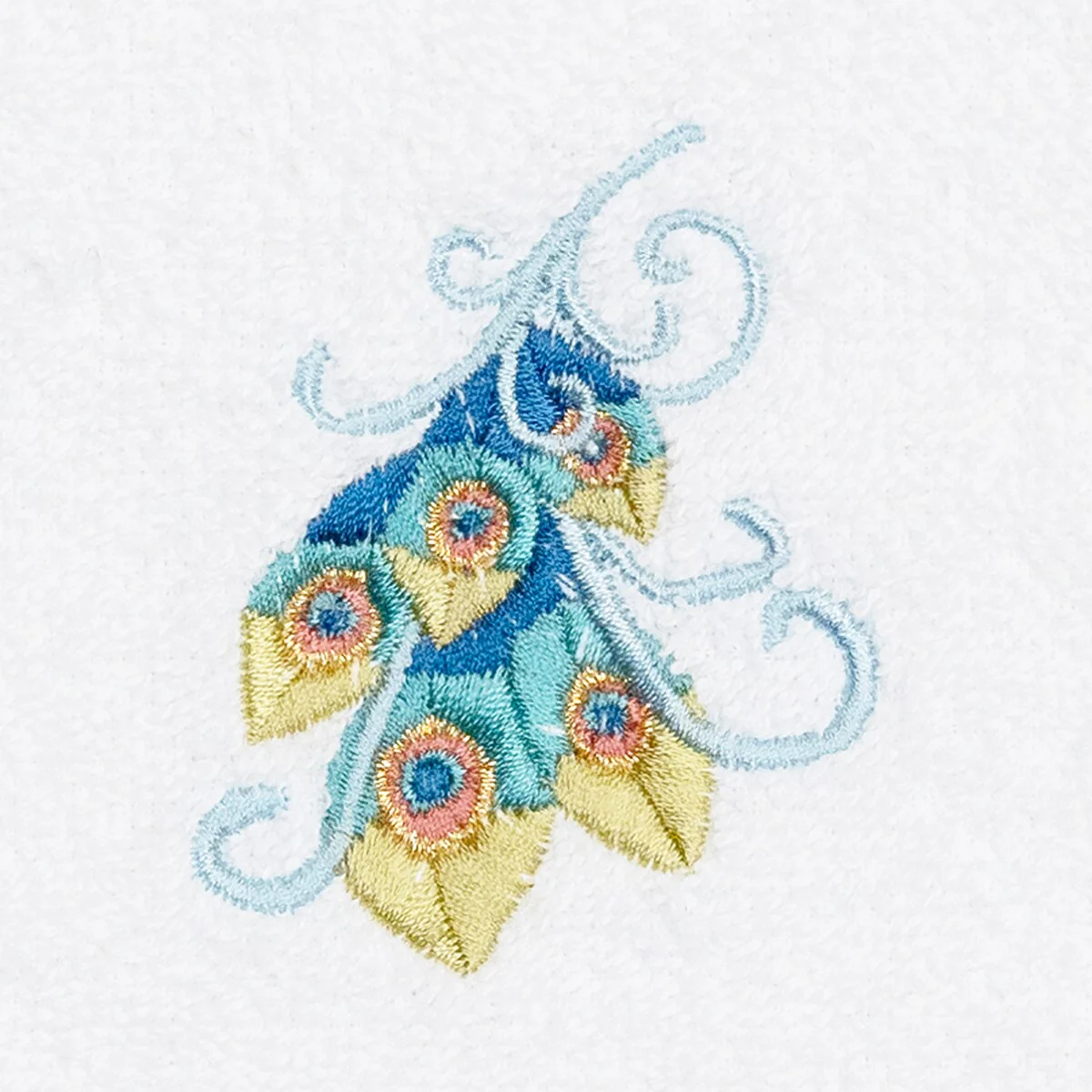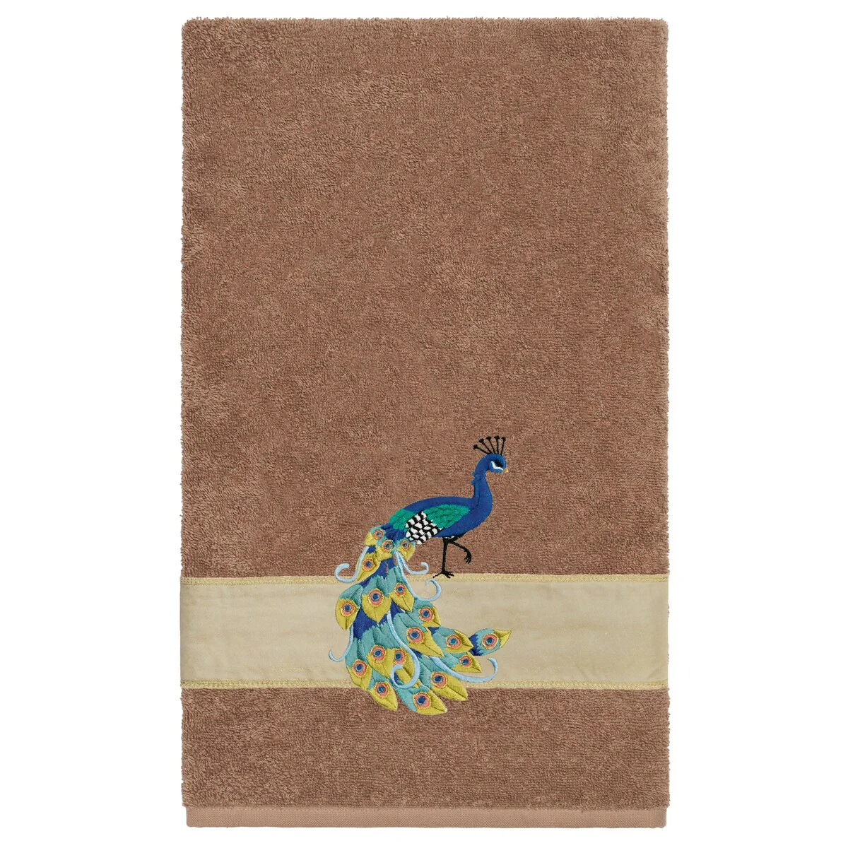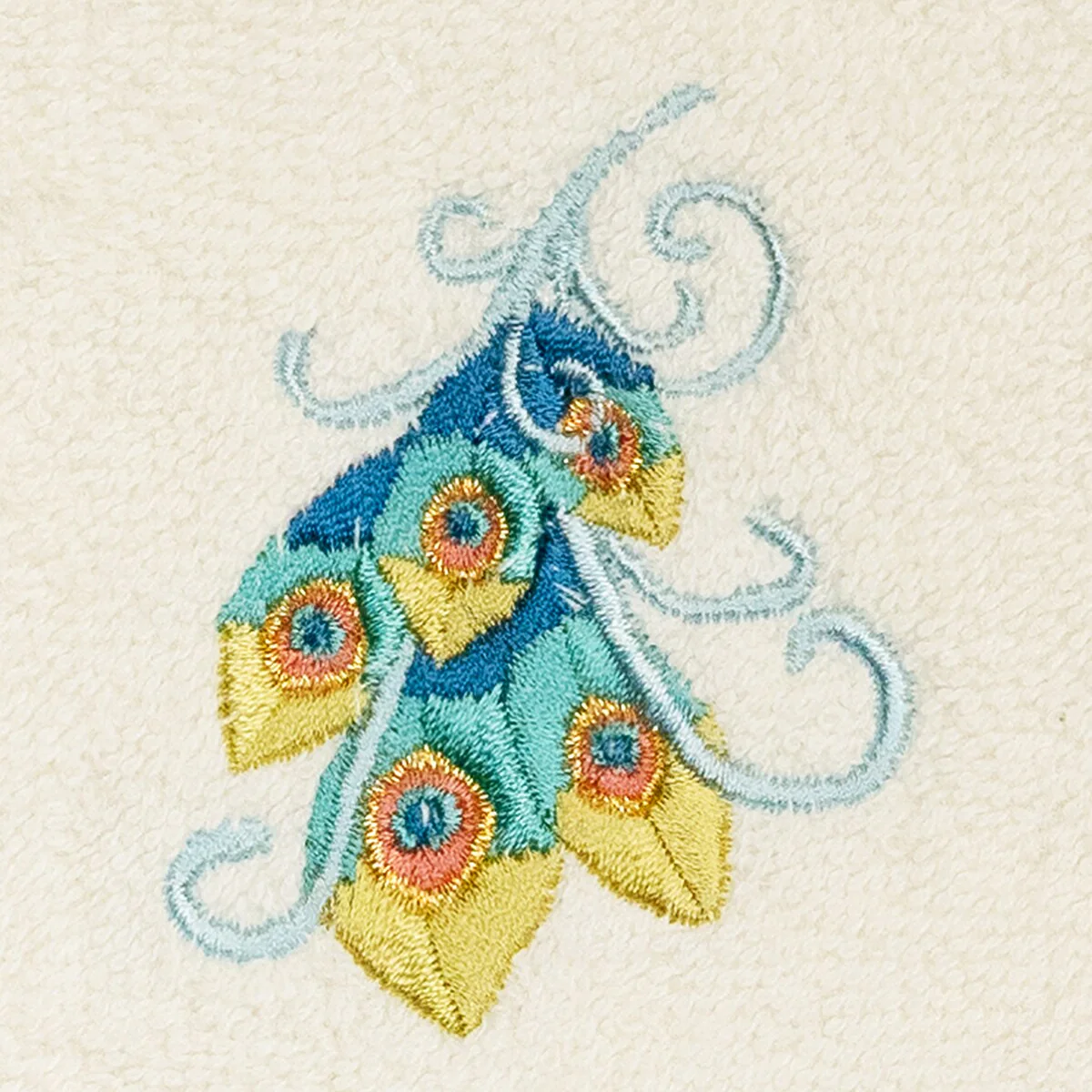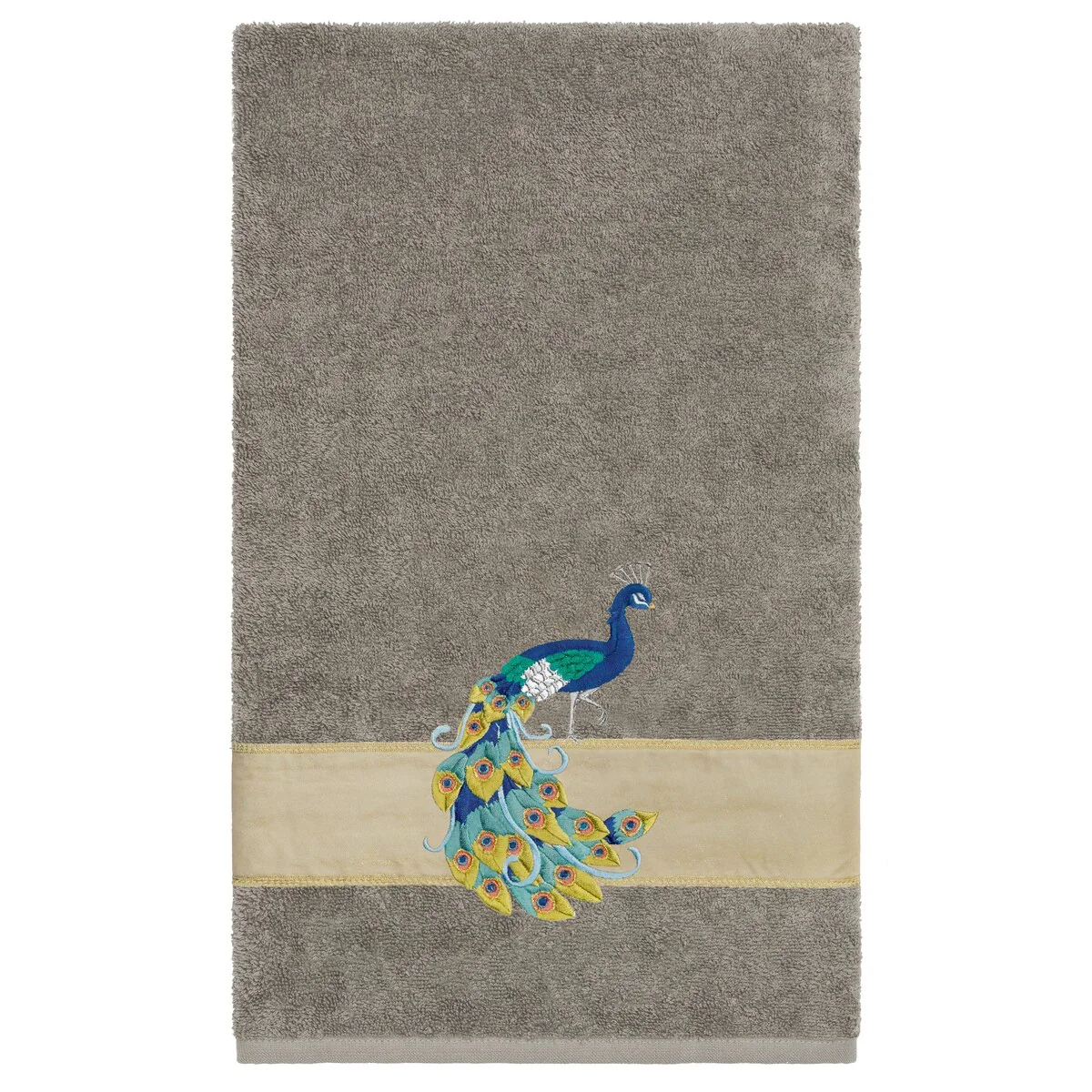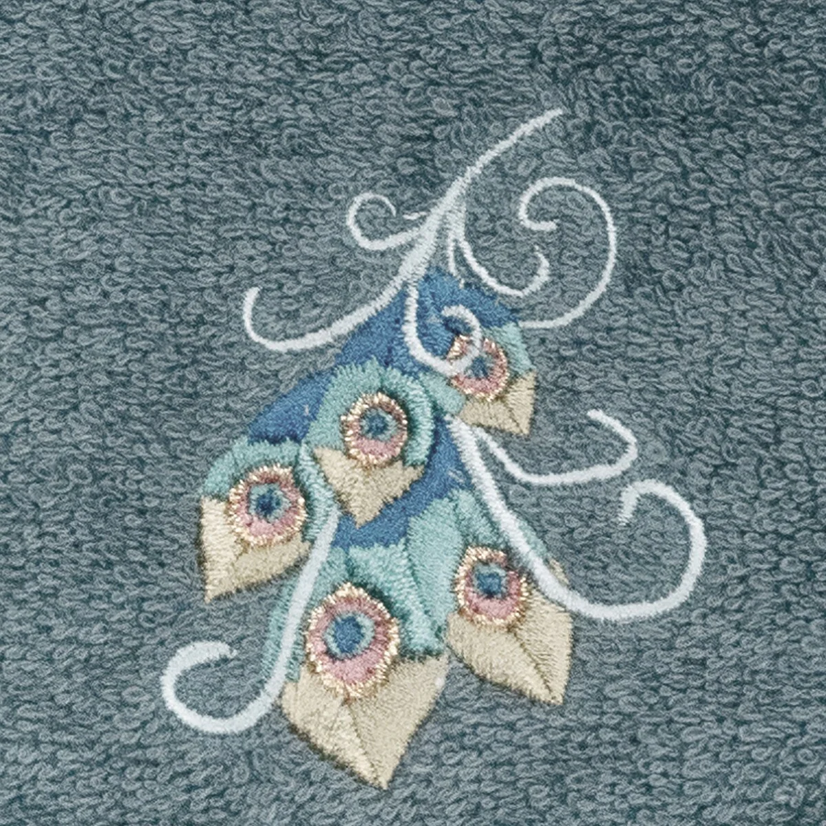 Your decorations are not complete without exotic embroidered towels for the comfort of your family and guests. The Penelope towels feature an intricate peacock embroidery on a sparkling tafetta border. Cloud soft and super absorbent, these luxurious, durable towels keep their plush appearance after washing. This collection is available in 7 elegant colors: White, Cream, Latte, Teal, Navy, Light Gray and Dark Gray. The Penelope Towel Collection brings a glamorous spirit and richness to your home decor and makes a great gift!