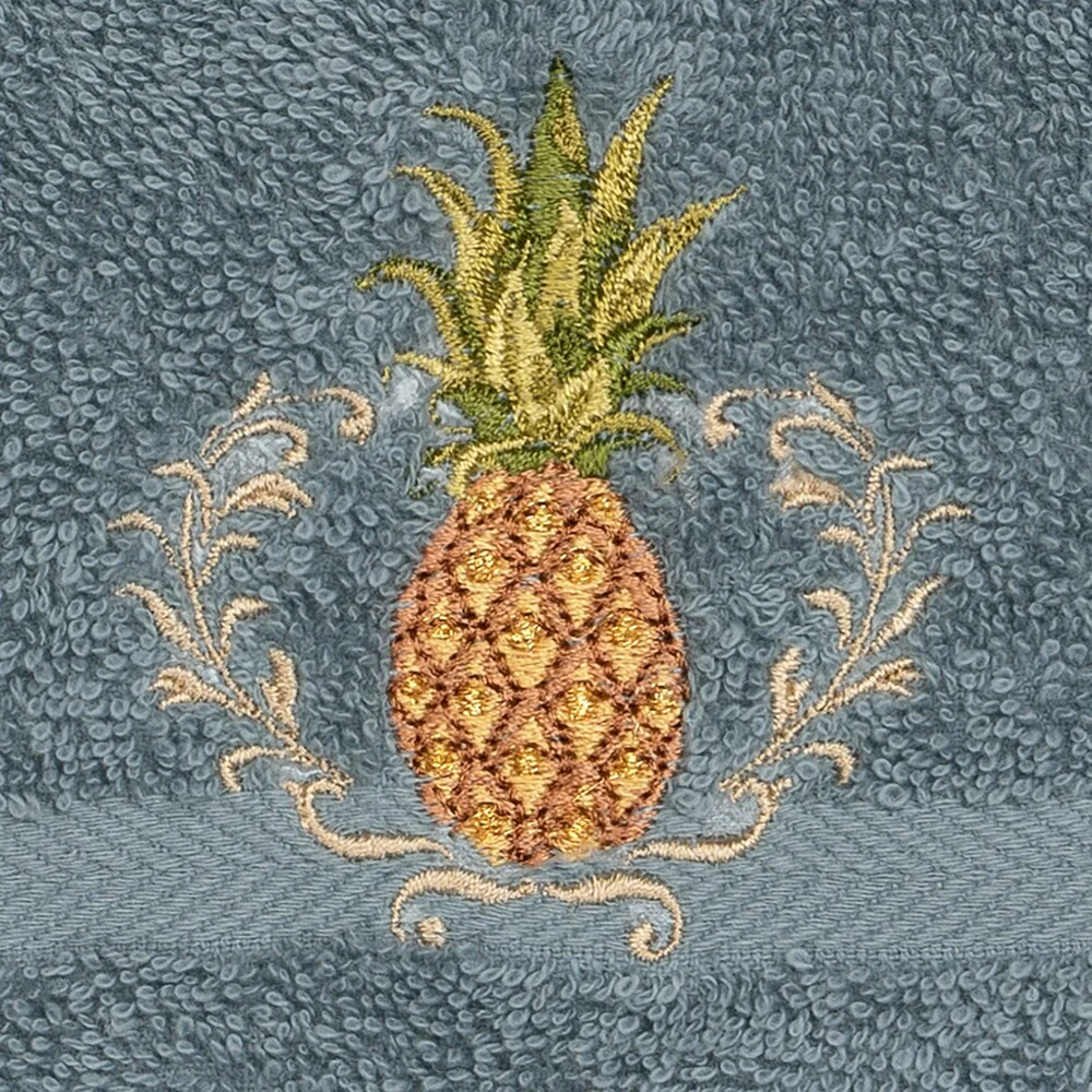 This authentic hotel and spa set of 2 washcloths are made from plush, high end Turkish cotton for supreme absorbency and durability. These beautiful teal blue washcloths are embellished with an embroidered pineapple design which traditionally symbolizes welcome and hospitality to add that special touch to your bathroom.