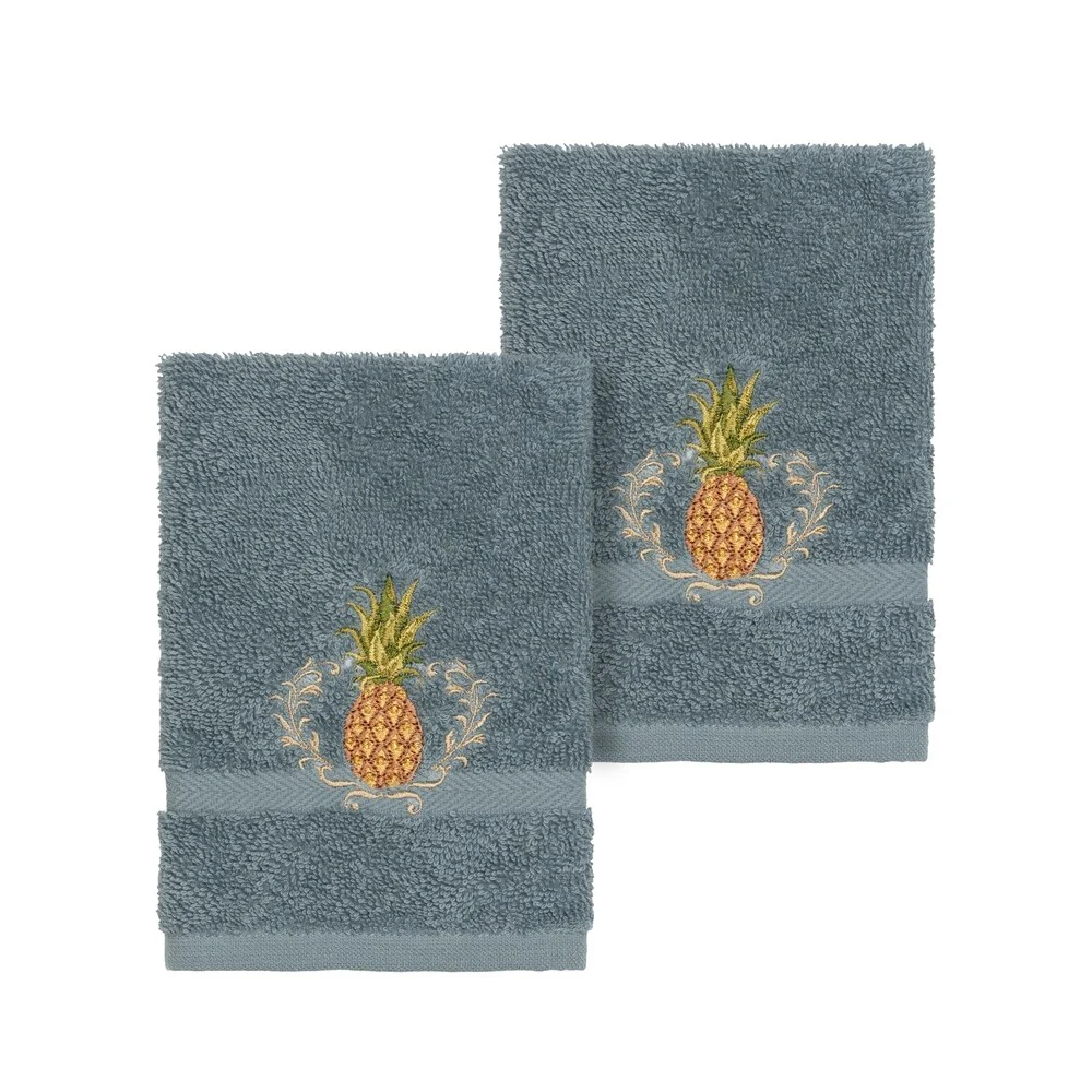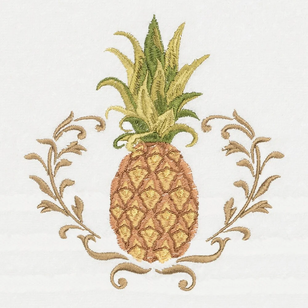 These authentic hotel and spa bath towels are made from plush, high end Turkish cotton for supreme absorbency and durability. The beautiful white towels are embellished with an embroidered pineapple design which traditionally symbolizes welcome and hospitality to add that special touch to your bathroom.