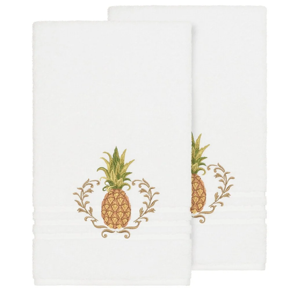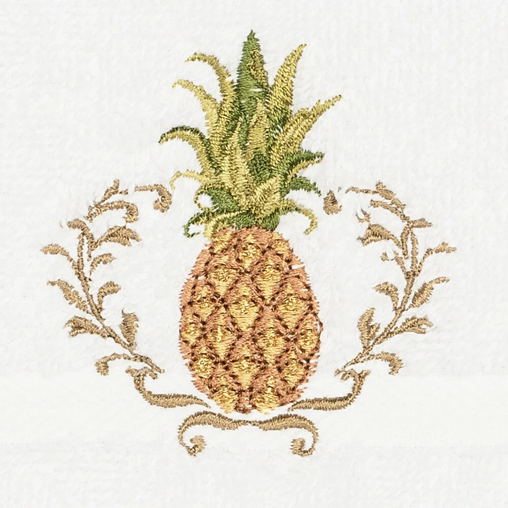 This authentic hotel and spa set of 2 washcloths are made from plush, high end Turkish cotton for supreme absorbency and durability. These beautiful white washcloths are embellished with an embroidered pineapple design which traditionally symbolizes welcome and hospitality to add that special touch to your bathroom.