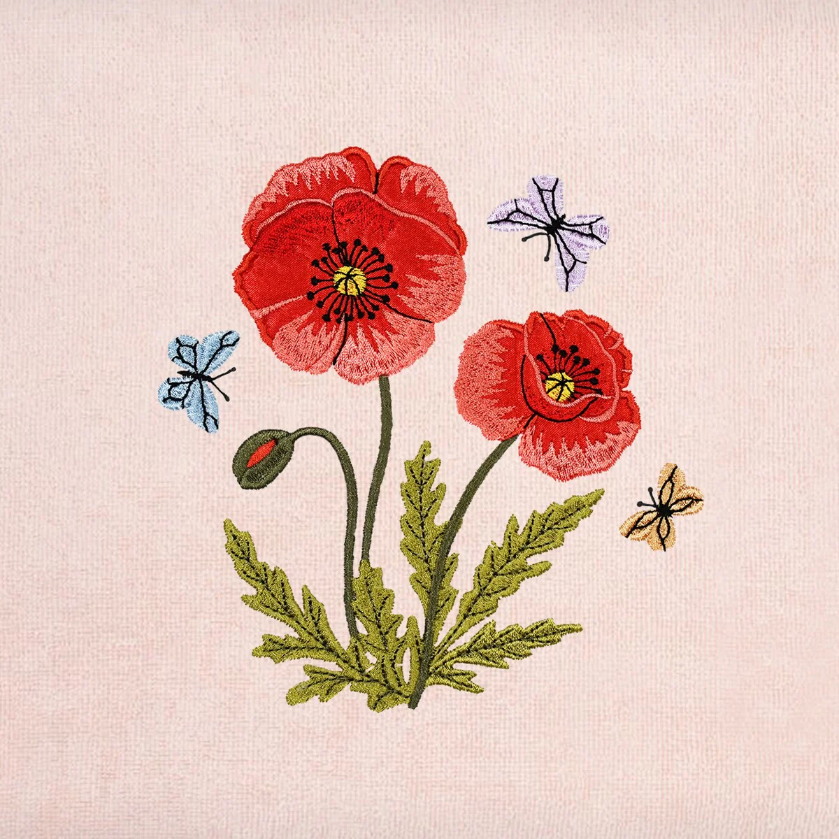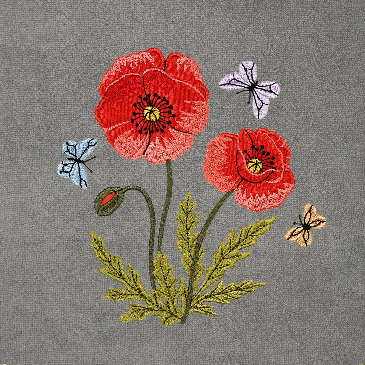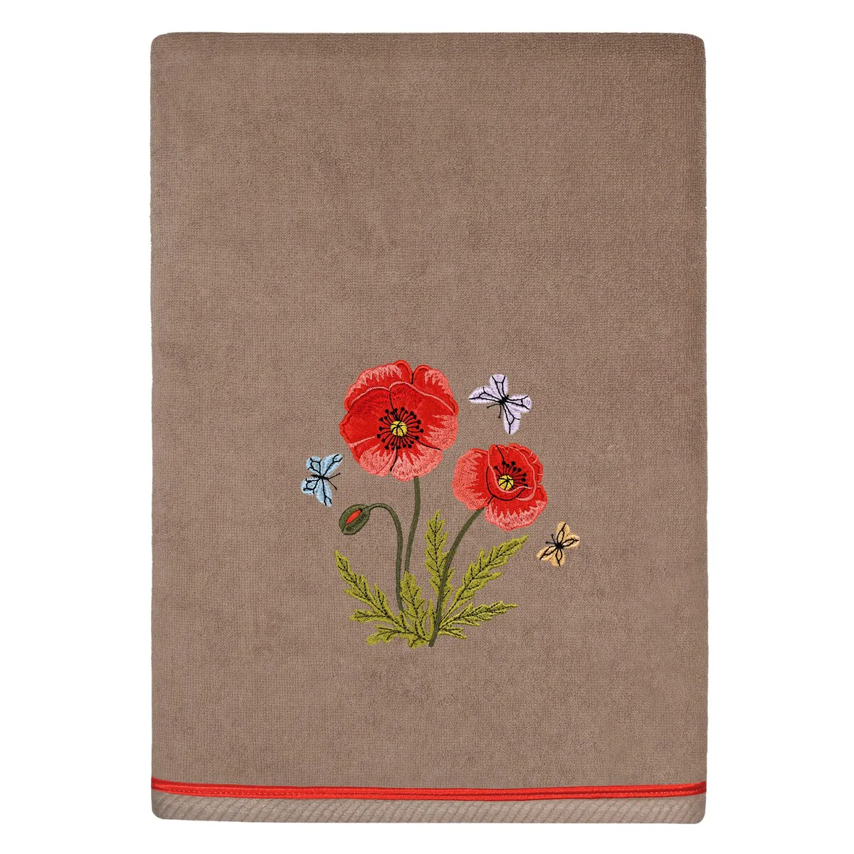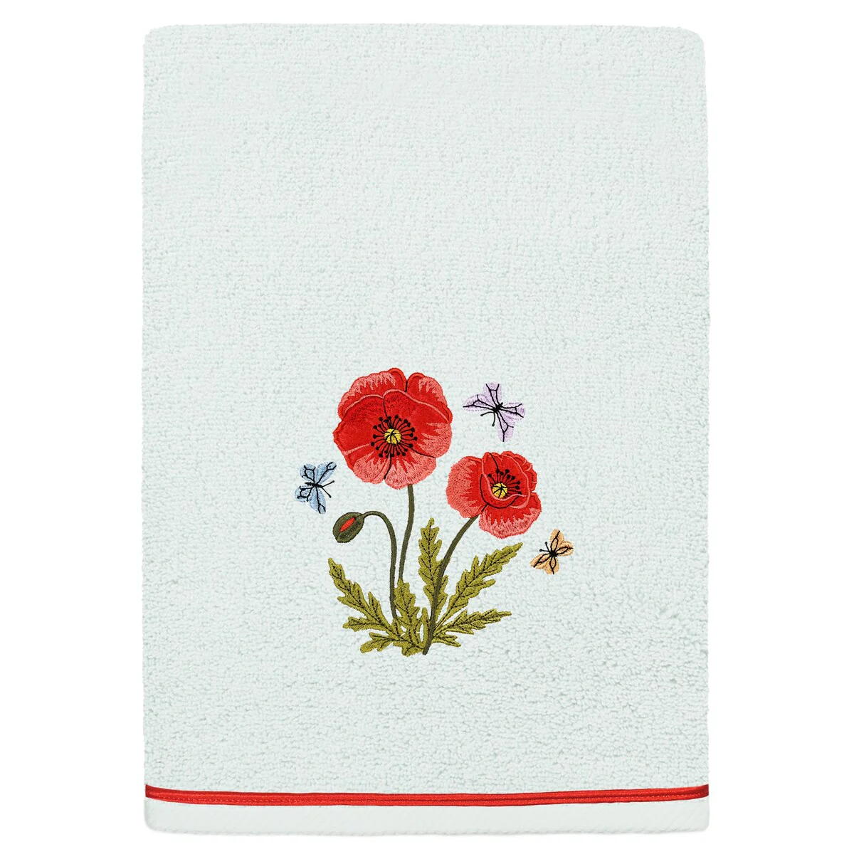 Create a mood of cottage charm in your bath with the POLLY Embellished Towel Collection. These towels feature an applique embroidered bouquet of vibrant poppies and foliage, highlighted by floating butterflies. Cloud soft and super absorbent, these luxurious, durable towels keep their plush appearance after washing. This collection is available in 8 elegant colors: White, Beige, Blush, Aqua, Silver, Cocoa, Charcoal and Marine. The POLLY Towel Collection brings a natural spirit and richness to your home decor and makes a great gift!Note: Due to variations in computer screen resolutions, slight color differences may exist between images provided and actual product.