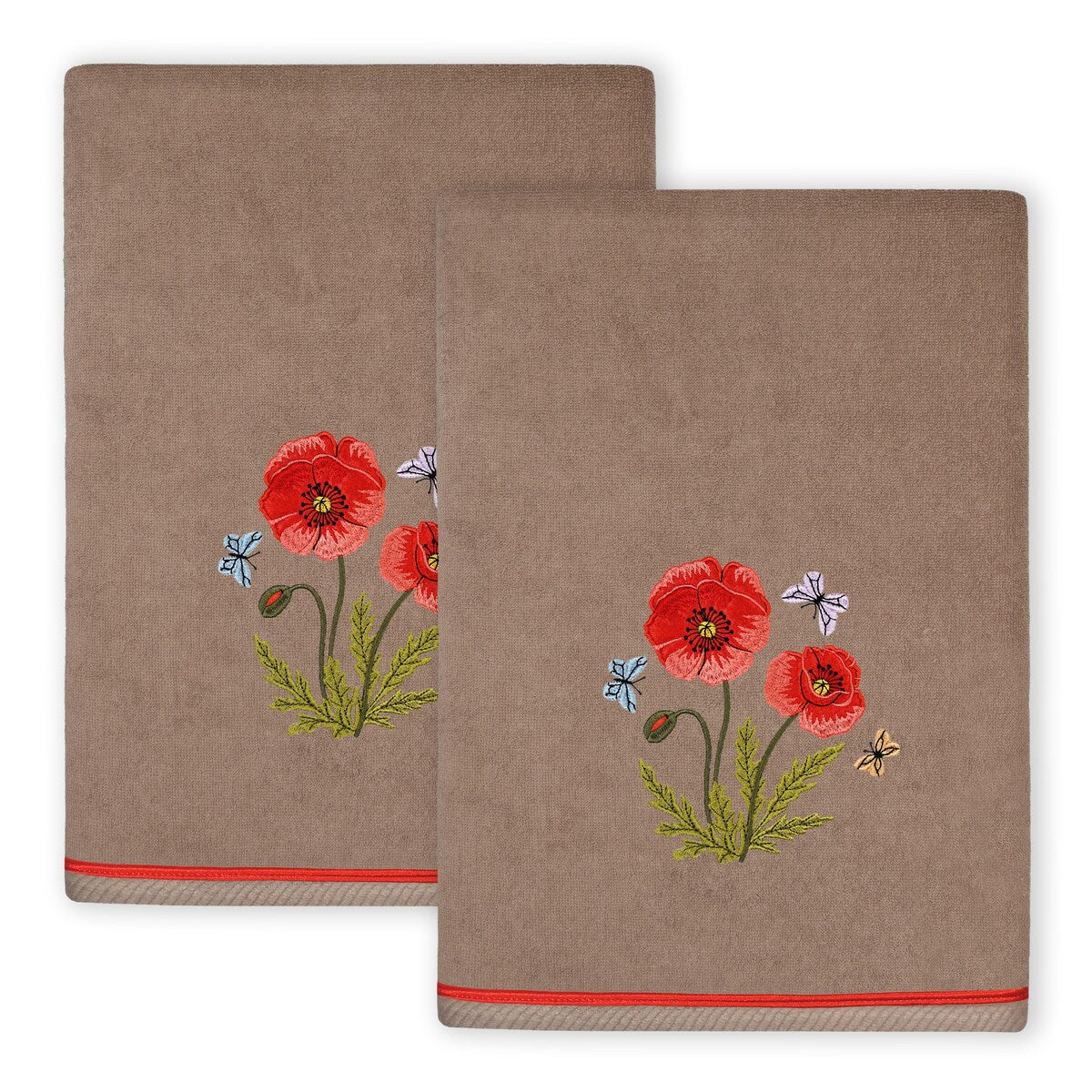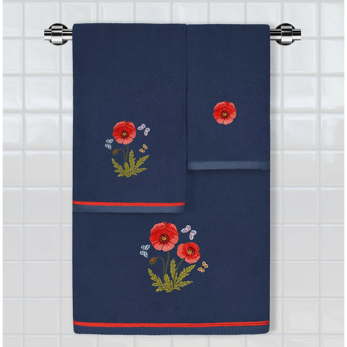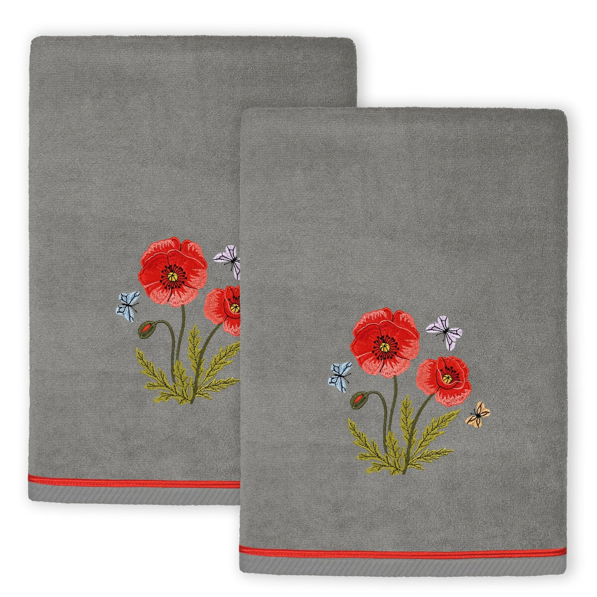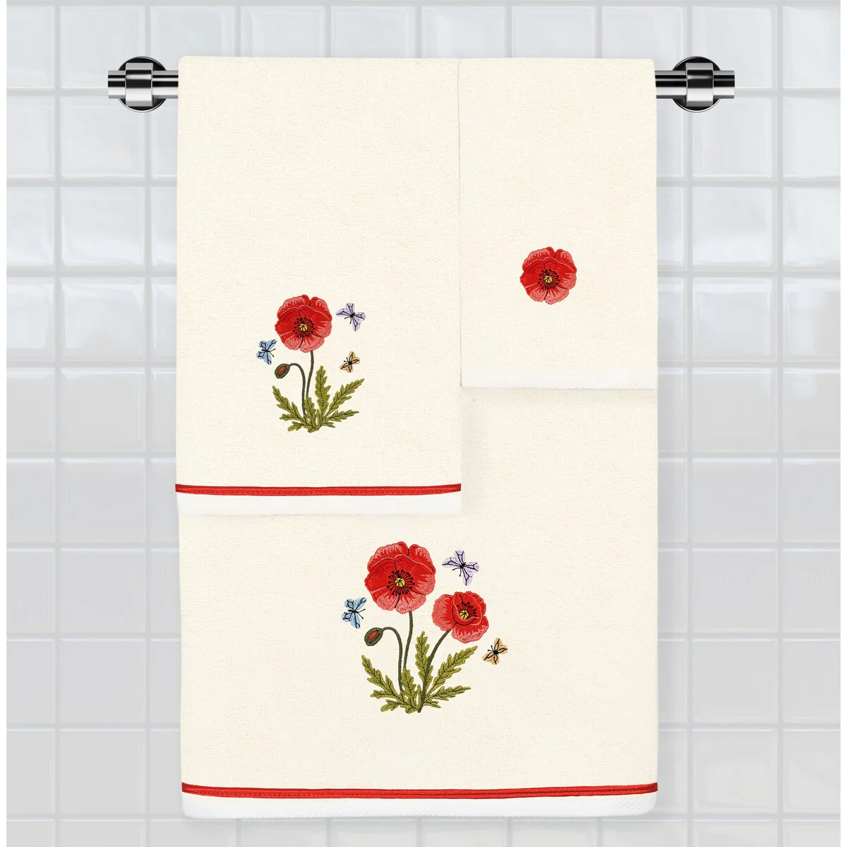 Create a mood of cottage charm in your bath with the POLLY Embellished Towel Collection. These towels feature an applique embroidered bouquet of vibrant poppies and foliage, highlighted by floating butterflies. Cloud soft and super absorbent, these luxurious, durable towels keep their plush appearance after washing. This collection is available in 8 elegant colors: White, Beige, Blush, Aqua, Silver, Cocoa, Charcoal and Marine. The POLLY Towel Collection brings a natural spirit and richness to your home decor and makes a great gift!Note: Due to variations in computer screen resolutions, slight color differences may exist between images provided and actual product.