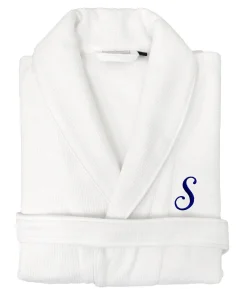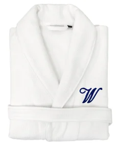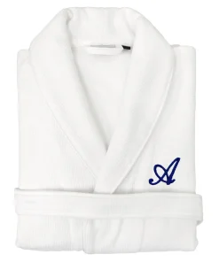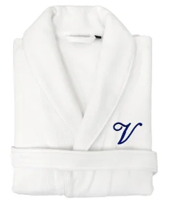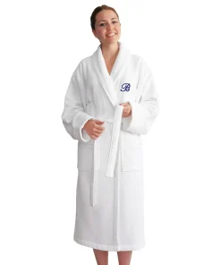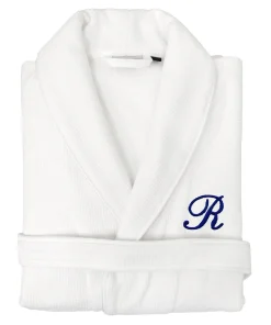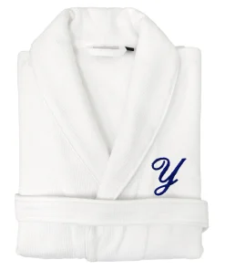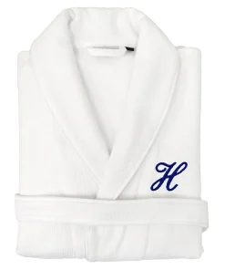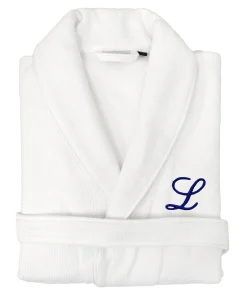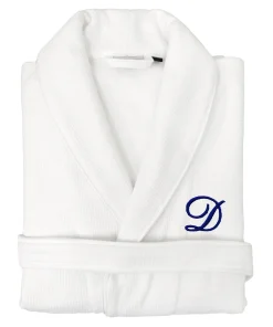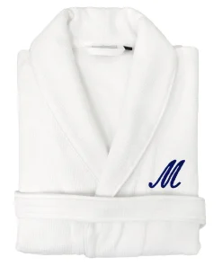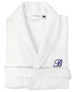 Feel like you’re in a hotel with this waffle-weave bath robe. Constructed from Turkish cotton and lined with a terry-looped interior, this robe feels soft and helps you dry off quickly after a shower. The navy blue embroidered initial adds a personal touch for yourself or as a gift.