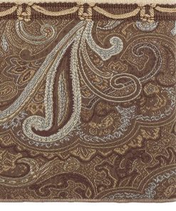 The Avanti Bradford Linen Decorative Embellished Bath Towel is bordered with a rich brown, blue and gold jacquard paisley fabric finished with an elegant gold and brown trim. The 27" x 50" velour linen towel is 100% cotton. Other colors and sizes available.