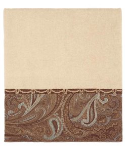 The Avanti Bradford Linen Decorative Embellished Bath Towel is bordered with a rich brown, blue and gold jacquard paisley fabric finished with an elegant gold and brown trim. The 27" x 50" velour linen towel is 100% cotton. Other colors and sizes available.
