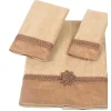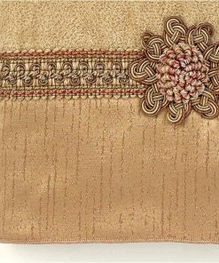 The Avanti Braided Cuff Rattan Decorative Embellished Bath Towel features a gold tonal striped jacquard fabric finished with a coordinating top braid and center medallion. 27" x 50" 100% cotton rattan velour towel. Coordinating shower curtain, accessories and rug also available.