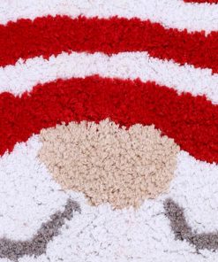 The Avanti Christmas Gnome Bath Rug features a gnome with long white beard and red and white striped hat. Large white snowflakes decorate the light grey ground. Tufted in 100% cotton, 20" x 32", latex non-skid back.