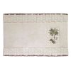 The Avanti Coastal Terrazzo rug is tufted in 100% cotton and embroidered with a nautilus and starfish. The rug has a white center and aqua border top and bottom. Imported. Coordinating shower curtain, towels, rug and accessories available.