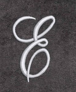 The Premier Granite/Silver Script Monogram Bath Towel features an embroidered silver script "E" on a dark grey ground. The 27" x 52" ringspun cotton terry granite towel is plush and absorbent and feels as great as it looks. Matching hand and fingertip sizes and other letters also available.