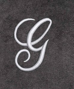 The Premier Granite/Silver Script Monogram Bath Towel features an embroidered silver script "G" on a dark grey ground. The 27" x 52" ringspun cotton terry granite towel is plush and absorbent and feels as great as it looks. Matching hand and fingertip sizes and other letters also available.