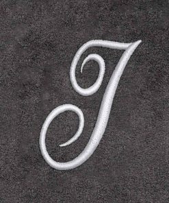 The Premier Granite/Silver Script Monogram Bath Towel features an embroidered silver script "I" on a dark grey ground. The 27" x 52" ringspun cotton terry granite towel is plush and absorbent and feels as great as it looks. Matching hand and fingertip sizes and other letters also available.
