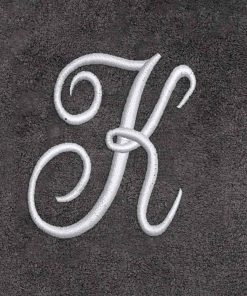 The Premier Granite/Silver Script Monogram Bath Towel features an embroidered silver script "K" on a dark grey ground. The 27" x 52" ringspun cotton terry granite towel is plush and absorbent and feels as great as it looks. Matching hand and fingertip sizes and other letters also available.