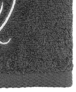 The Premier Granite/Silver Script Monogram Fingertip Towel features an embroidered silver script "Q" on a dark grey ground. The 11" x 18" ringspun cotton terry granite towel is plush and absorbent and feels as great as it looks. Matching bath and hand sizes and other letters also available.