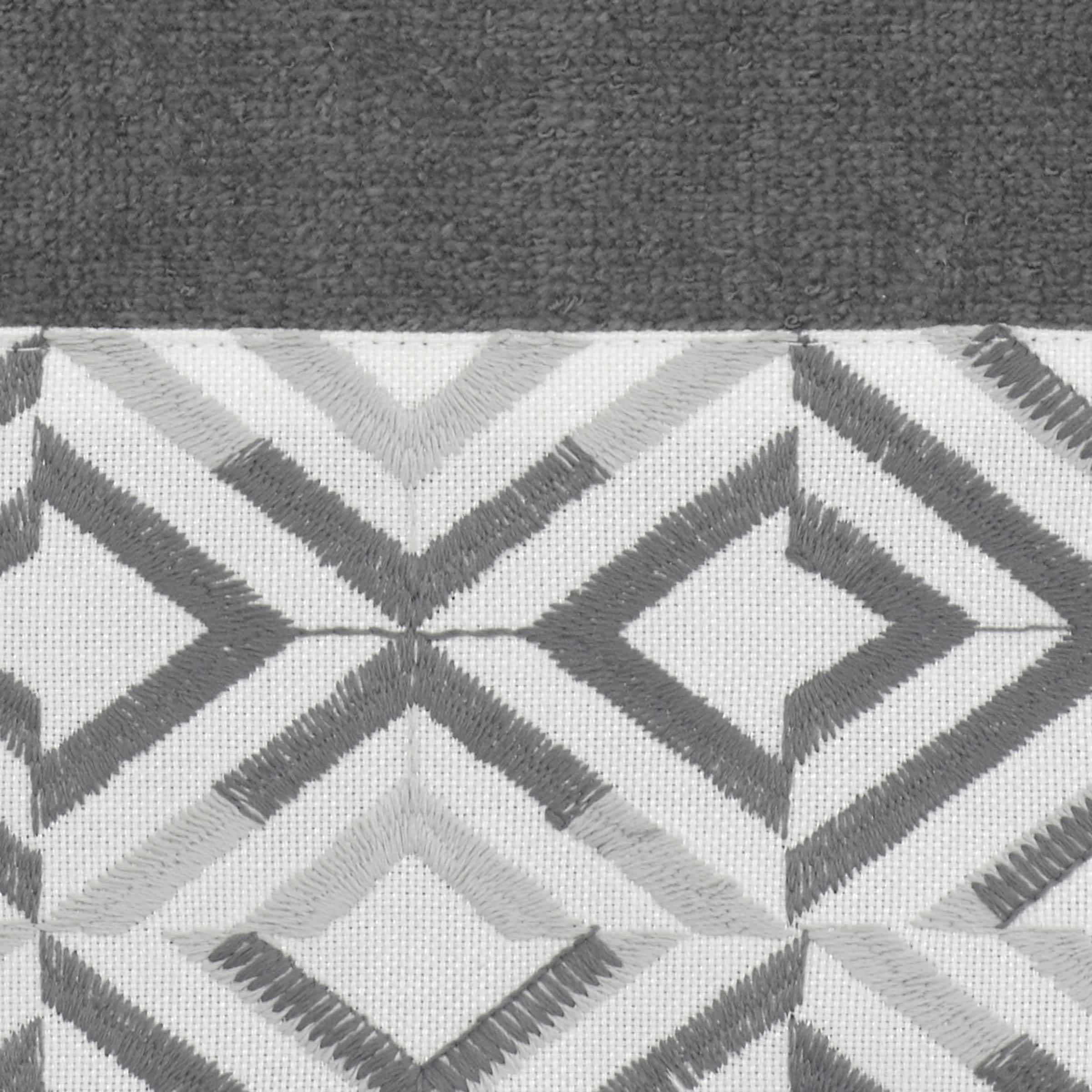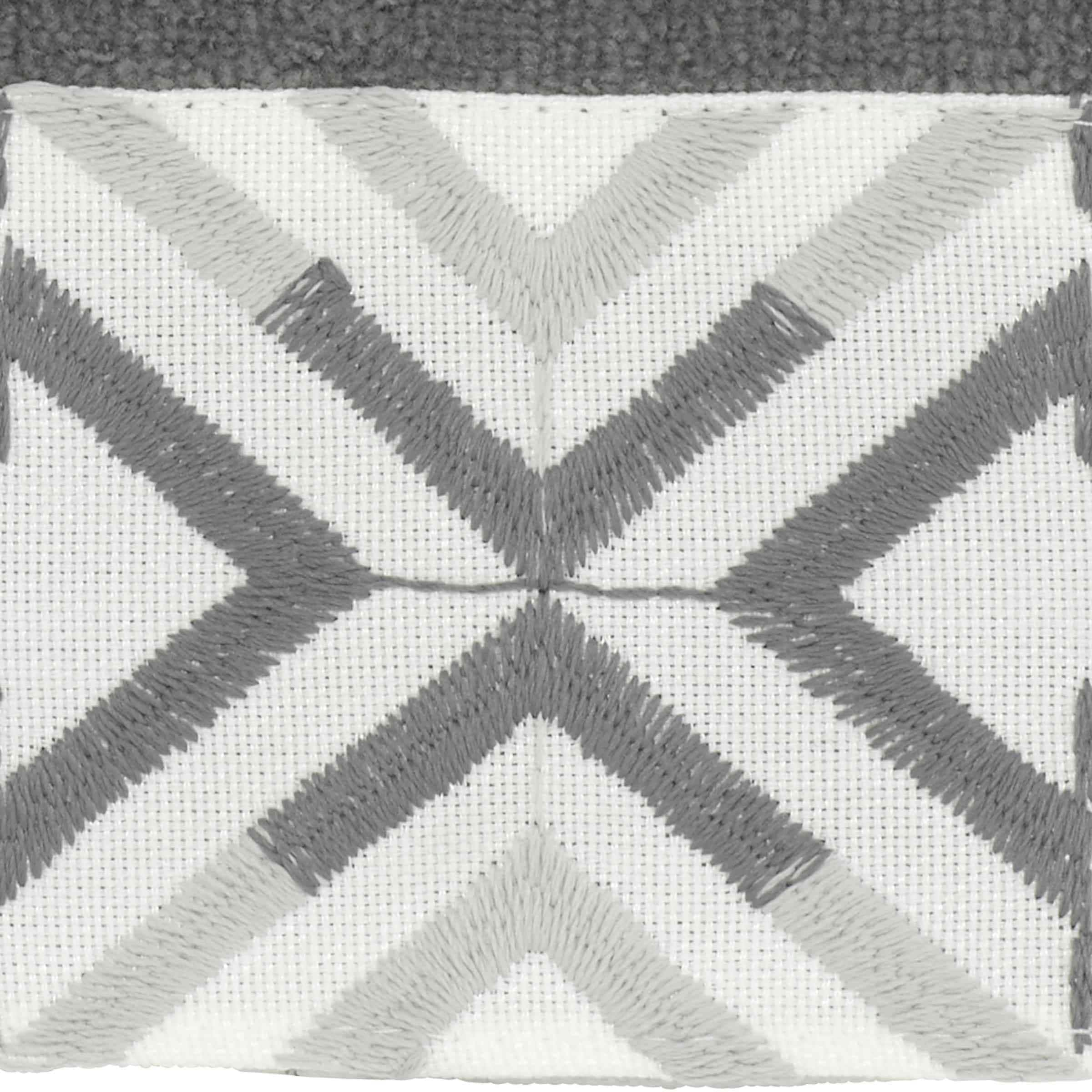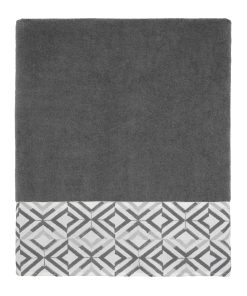 The Avanti Harlow Nickel Bath Towel features offset rows of concentric diamonds intricately embroidered in light and dark grey on a 100% polyester white cloth. The 27" x 50" nickel velour towel is made of 100% cotton. Other colors and sizes available.