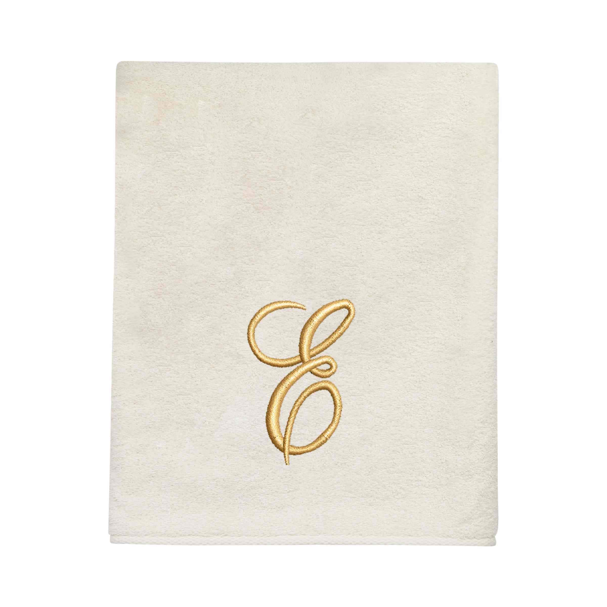 Avanti Linens Ivory/Gold Script Monogram Bath Towel Letter E – Bath Towel