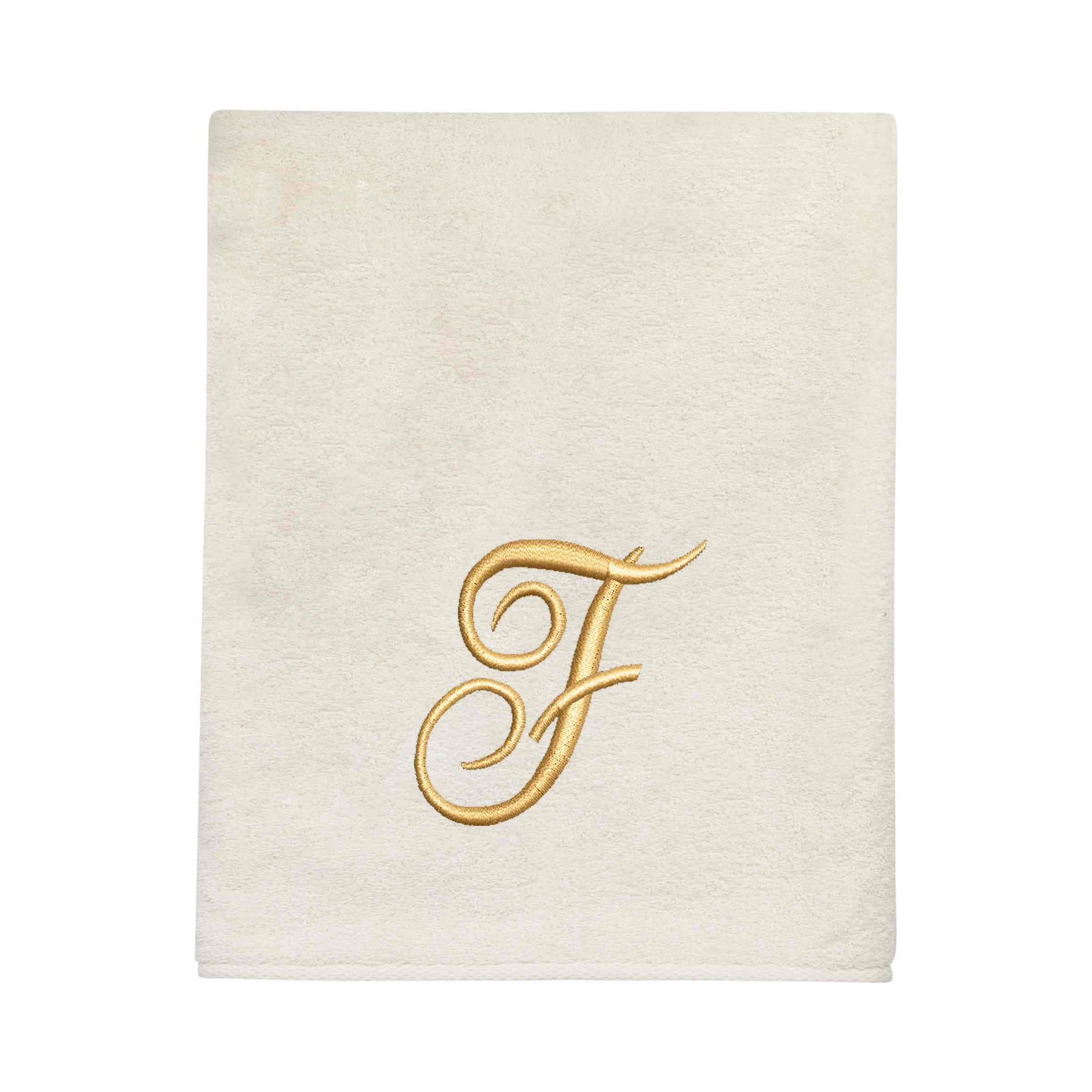 Avanti Linens Ivory/Gold Script Monogram Bath Towel Letter F – Bath Towel