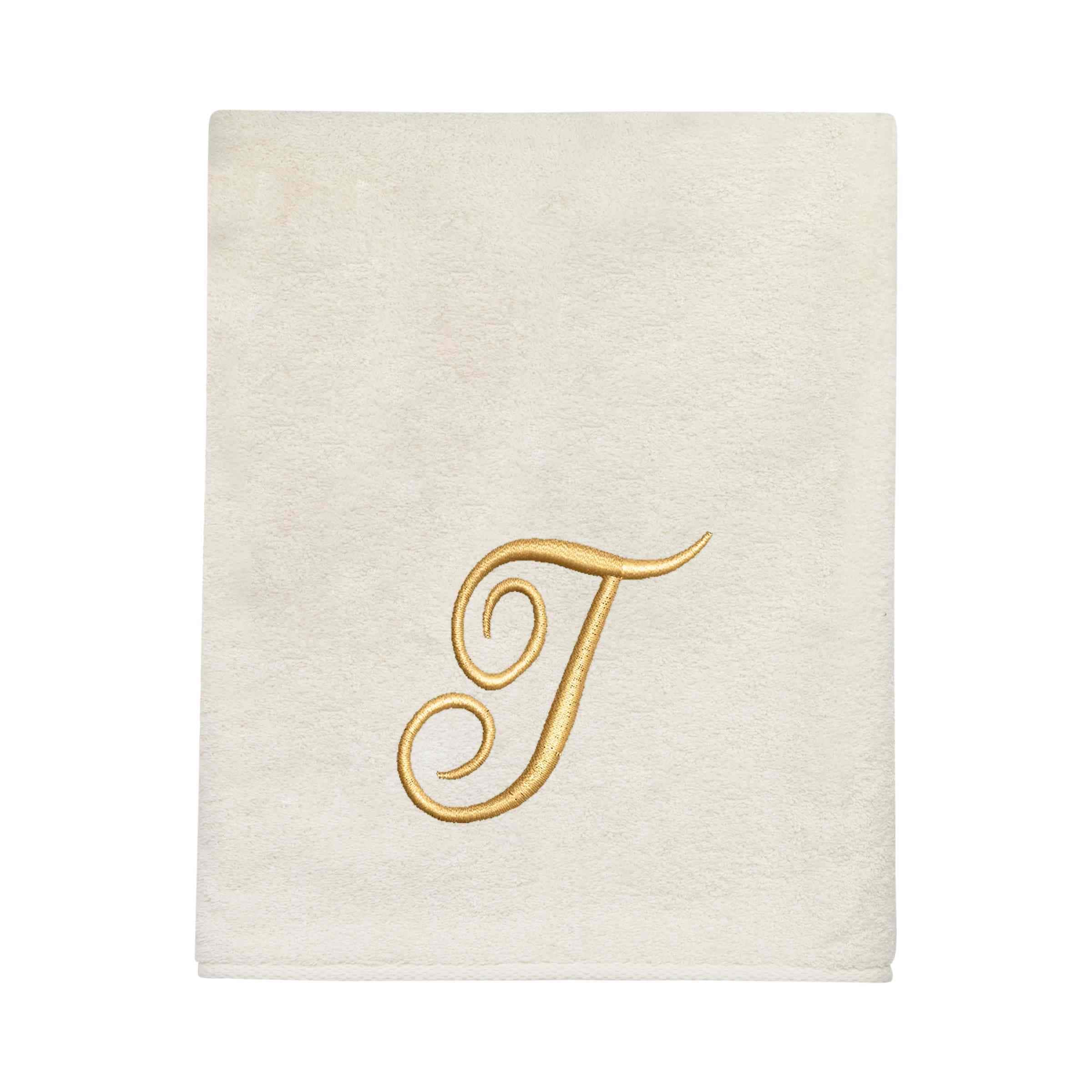 Avanti Linens Ivory/Gold Script Monogram Bath Towel Letter T – Bath Towel
