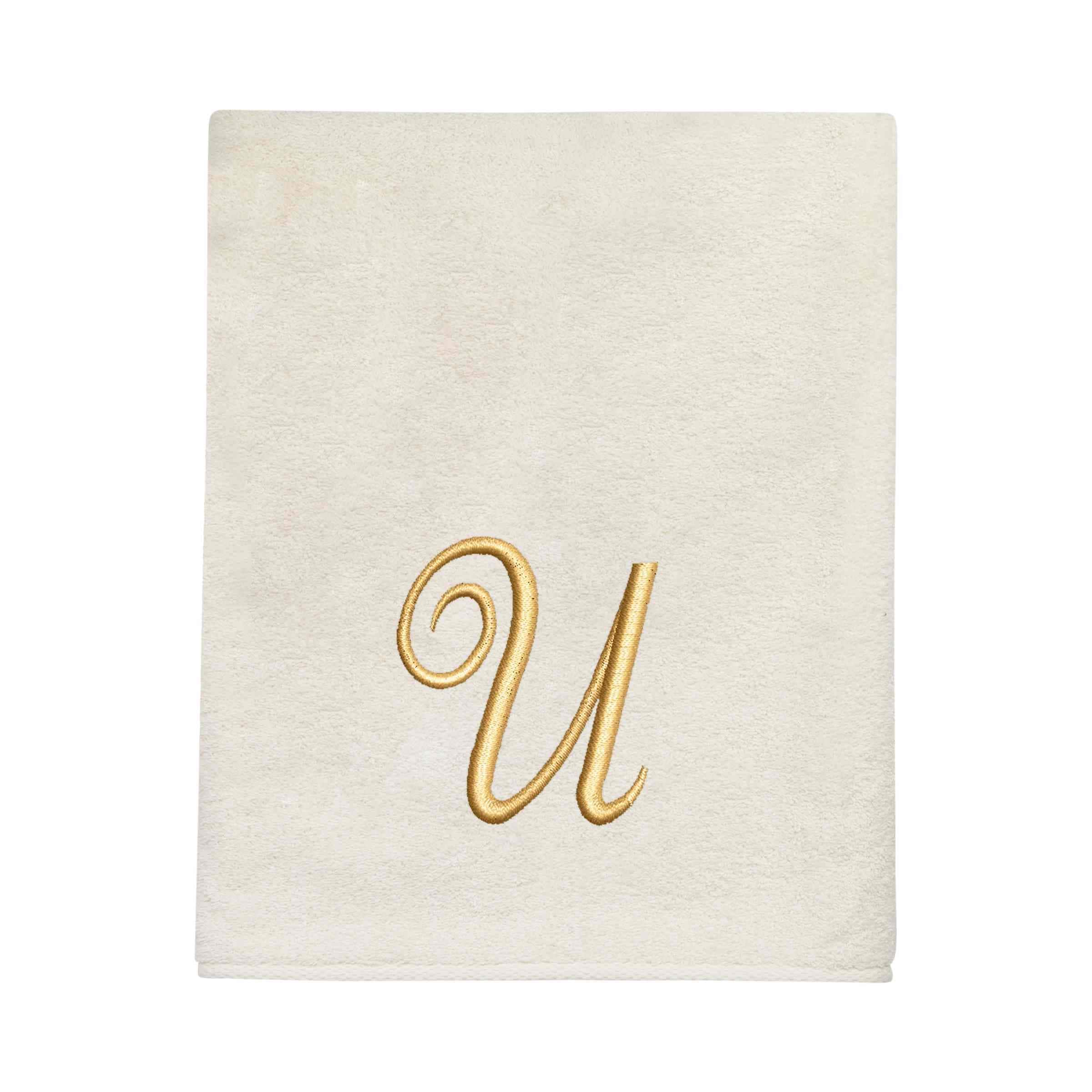 Avanti Linens Ivory/Gold Script Monogram Bath Towel Letter U – Bath Towel