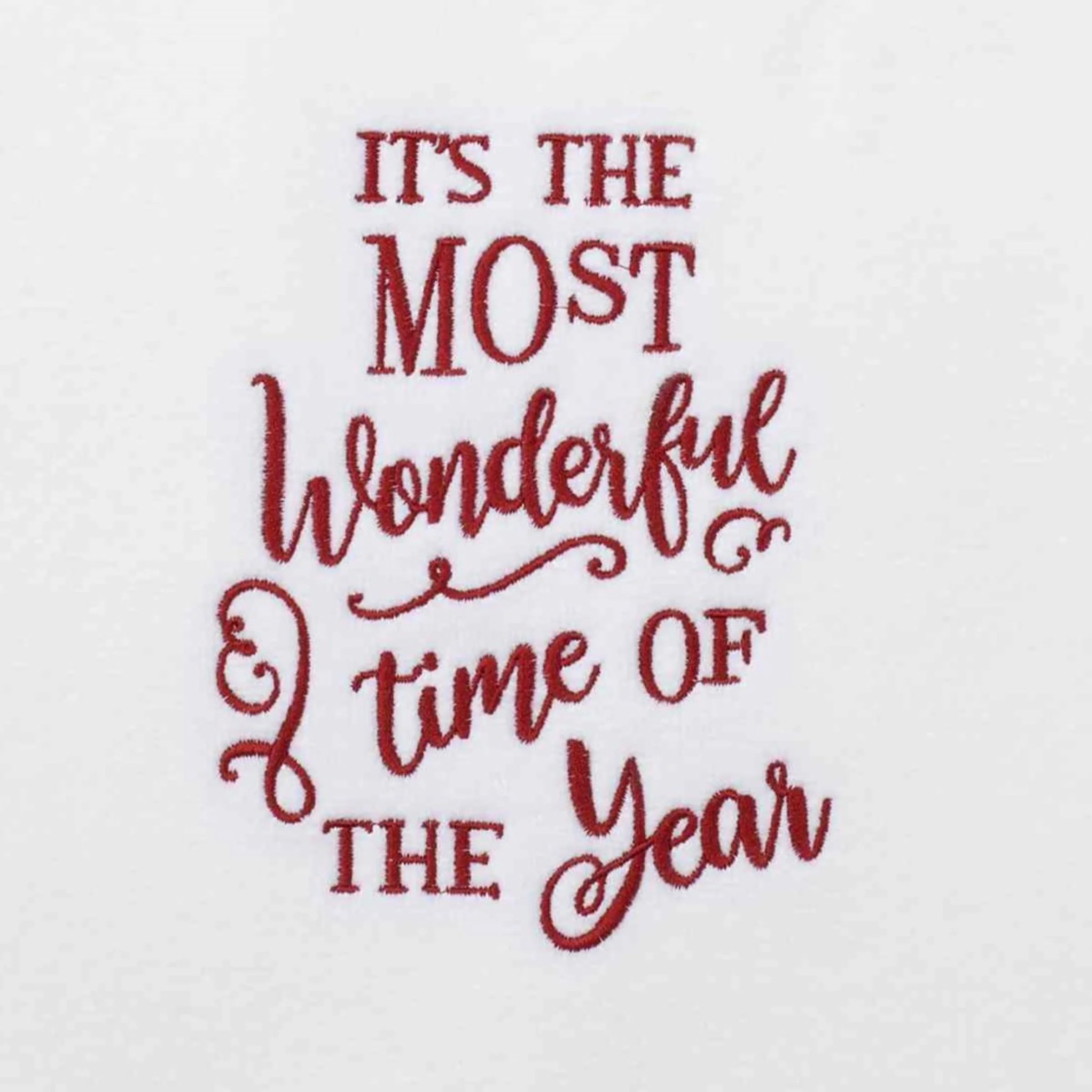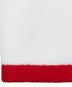 The Avanti Sparkle decorative Bath Towel features an embroidered red Christmas tree with silver accents, white snow and a silver star on top. The 100% cotton white velour towel is finished with a coordinating red woven polyester border. 27" x 50", machine washable.