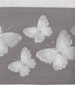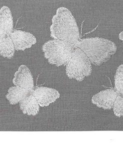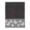The Avanti Yara White Decorative Bath Towel features beautifully embroidered white butterflies on a grey textured polyester fabric border. Towel is 27" x 50" 100% cotton white velour. Hand and fingertip and other colors also available.