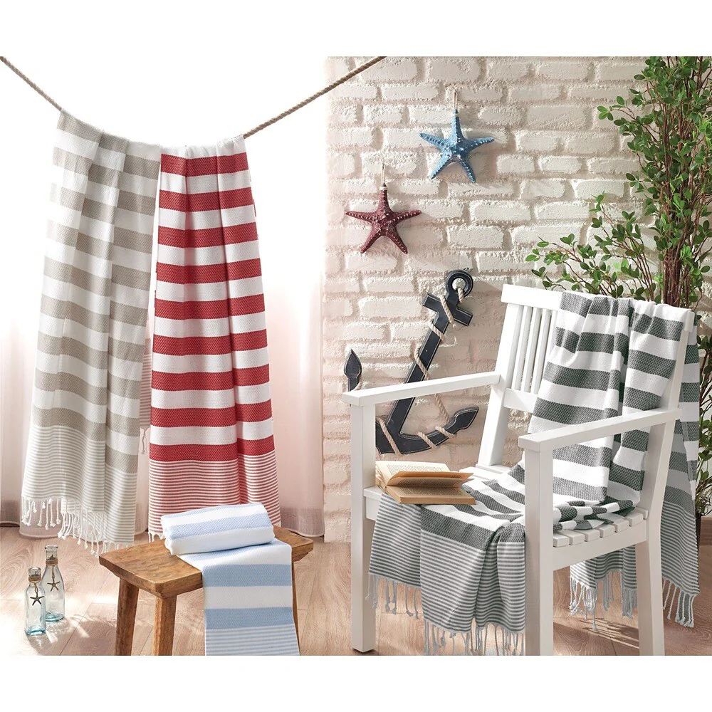 Authentic Grey Bold Stripe Pestemal Fouta Turkish Cotton Bath/ Beach Towel with Monogram Initial