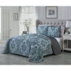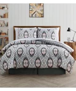 A whimsical floral-inspired medallion pattern on the Avondale Manor Nicola Reversible Comforter Set brings a youthful and carefree spirit to your bedroom. A quatrefoil printed sheet set, plus matching bedskirt, help create a cohesive look.Features: