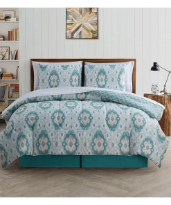 A whimsical floral-inspired medallion pattern on the Avondale Manor Nicola Reversible Comforter Set brings a youthful and carefree spirit to your bedroom. A quatrefoil printed sheet set, plus matching bedskirt, help create a cohesive look.Features: