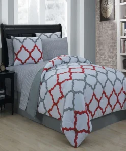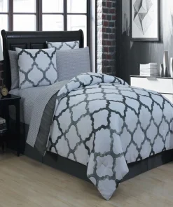 Featuring a stylish geometric, damask pattern, this Porter bed in a bag from Avondale Manor is sure to add a sophisticated contemporary look to your bedroom decor. The bedding is constructed of plush microfiber polyester for a luxuriously soft feel and is machine washable for easy care and cleaning.
