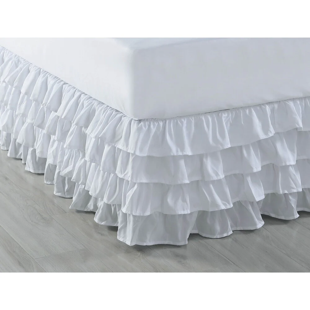 Add elegance to your bedroom with this beautiful, four-tieredAvondale Manor Ruffled Bedskirt. This bedskirt completes the chiclook of any bedroom and adds a finishing touch to your beddingensemble. Available in white, ivory, grey and coral color options,this bedskirt will blend with any decor style.