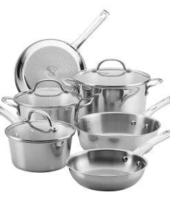 - STAINLESS STEEL COOKWARE SET INCLUDES: 2-Quart Saucepan with Lid, 3-Quart Stockpot with Lid, 3-Quart Open Sauté, 6-Quart Stockpot with Lid, 8.5-Inch Frying Pan, 10-inch Frying Pan.