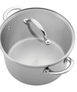 - STOVETOP SHINE: Brushed stainless steel handles with polished accents, snug-fitting lids seal in heat and moisture.