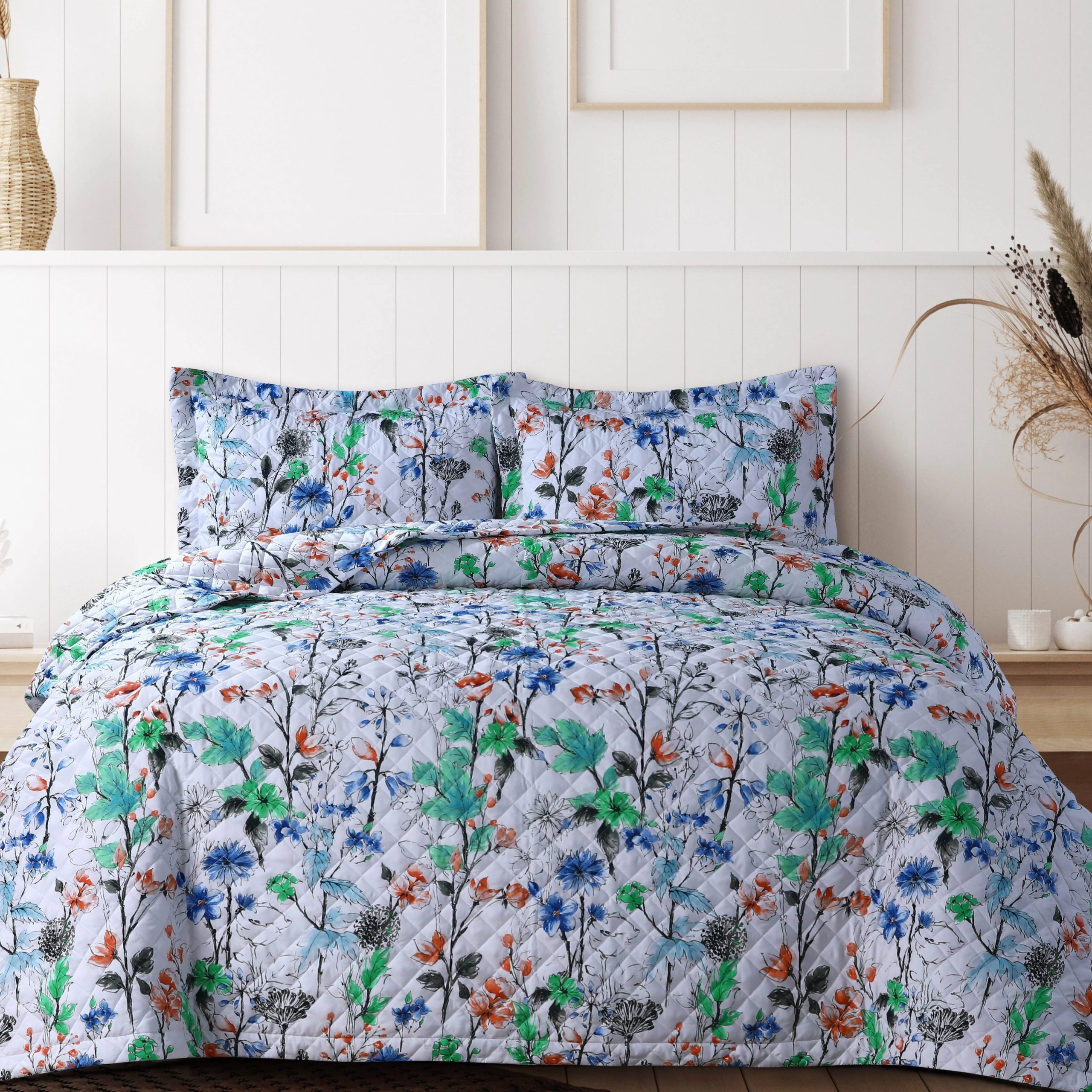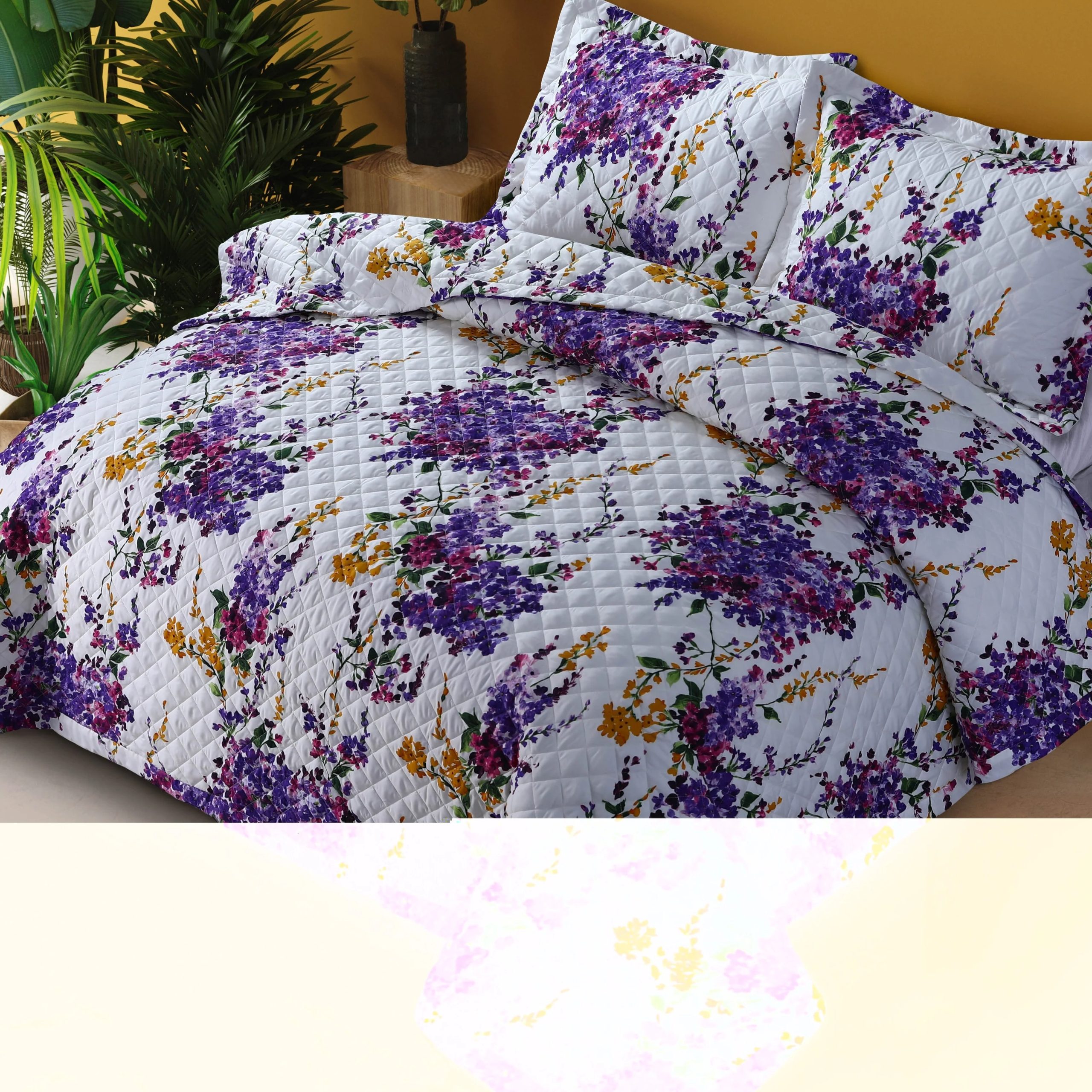 Add a touch of elegance and warmth to your bed with the Azores Home Floral Printed Oversized Quilt Set. Made of brushed microfiber with a 110-gsm weight, this bedding is not only soft and smooth but also durable. Choose from a variety of stunning floral printed patterns with diamond stitching to add style to your bedroom. This quilt set is tested for harmful substances to meet STANDARD 100 Oeko-tex certification and machine-washable for easy care.