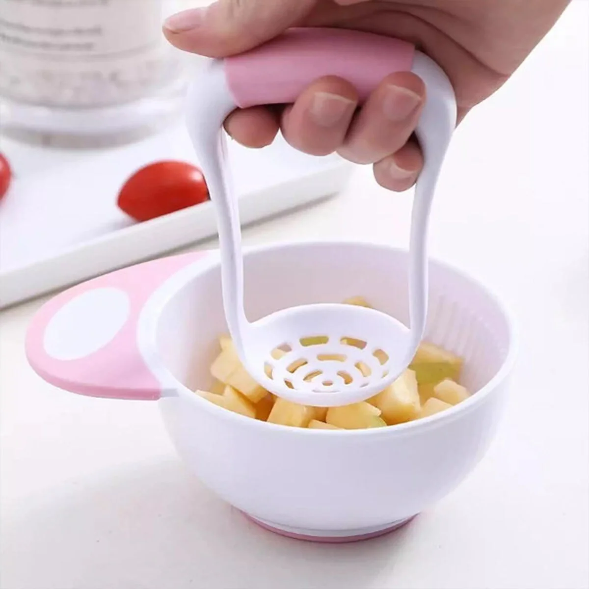 Easy Use: Food masher, The bowl has non slip bottom and surface, which is easy to use and clean.