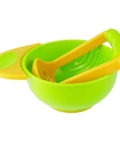 Material: PP Portable design Instant baby food masher Grind soft veggies and fruits Prepares perfect food consistency easy to gulp Package includes a mashing spoon and chafing bowl